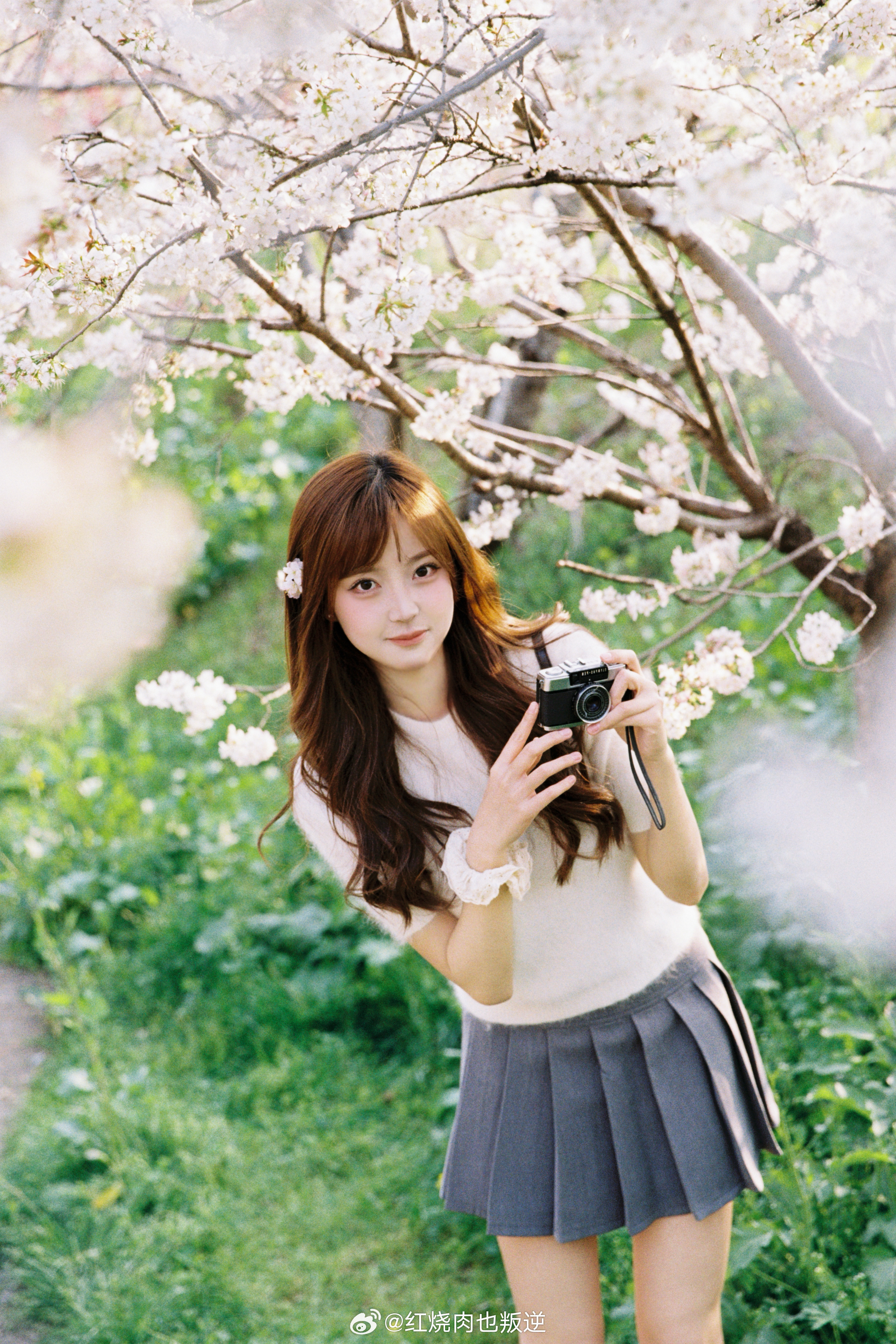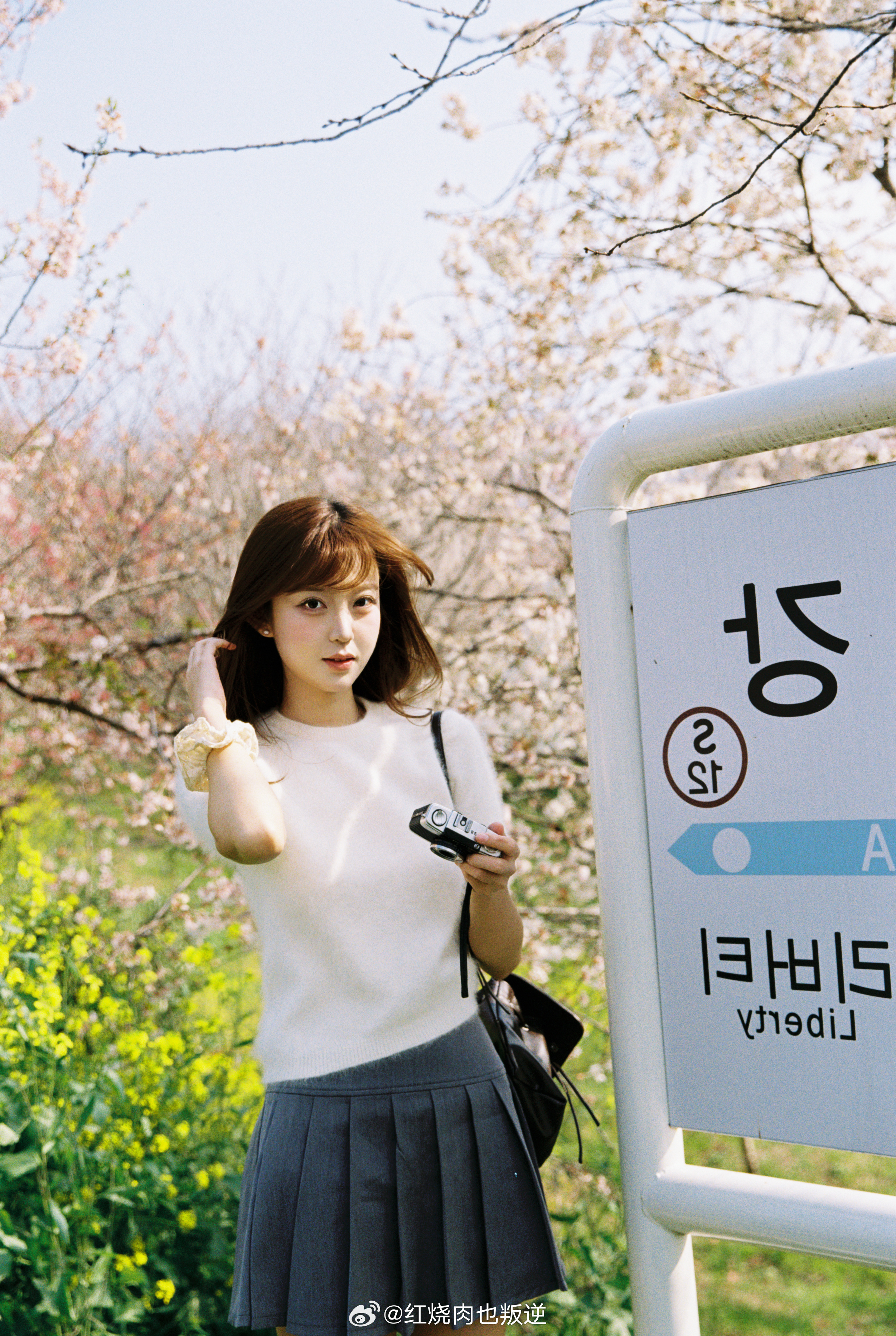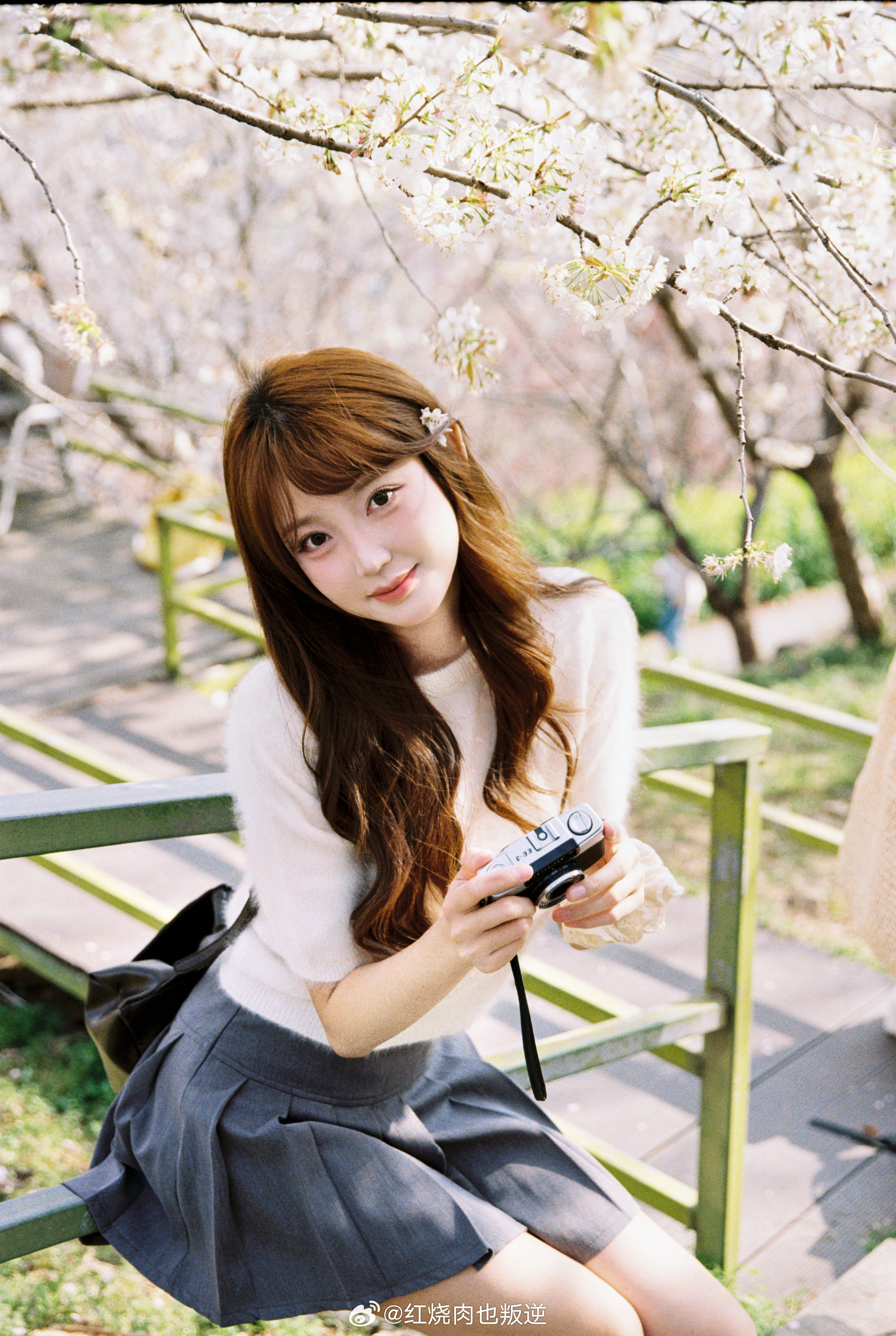 与春天撞个满怀🌸风已带春的味道,我于湖边樱花树下,与满枝温柔相拥。简单棕调