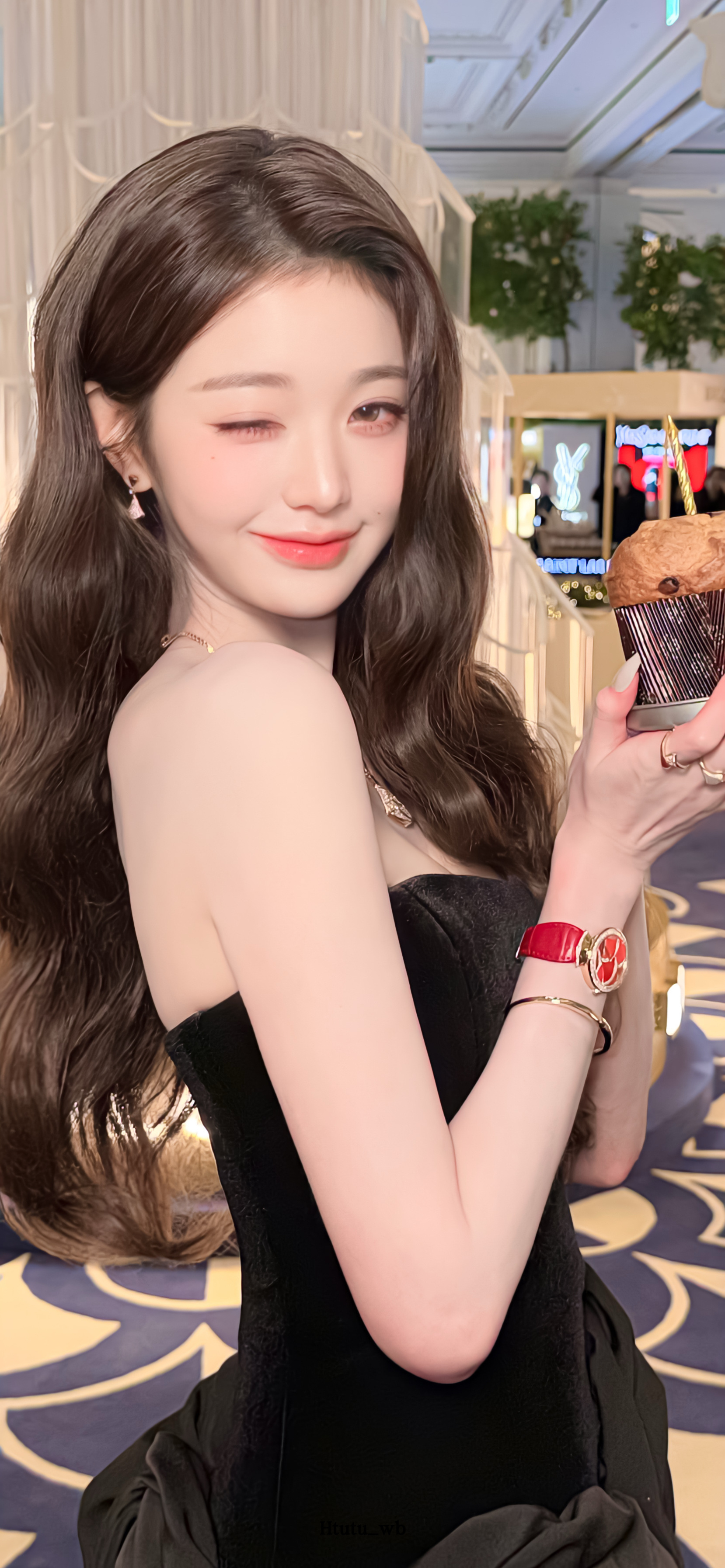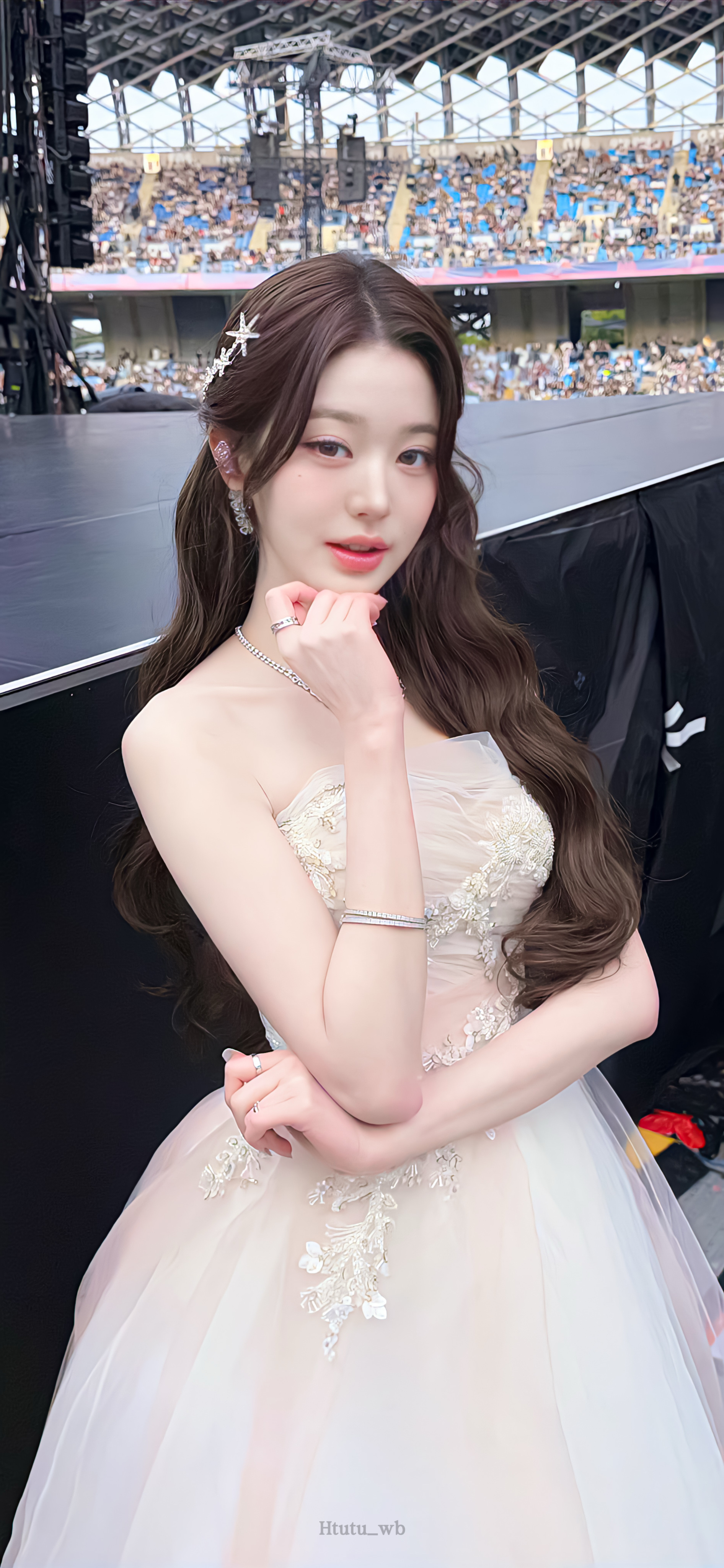 王玉雯壁纸~“这条闪着光泽的纱裙造型,让人一眼就迷上了这份美。