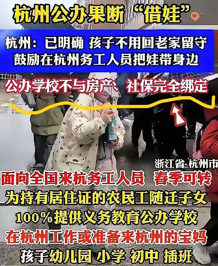生娃少逼出来的大动作!杭州终于松口,一线城市要集体跟风了 这波政策根本不是主动创新,明摆着是人口减少倒逼出来的结果。 杭州率先放宽外来务工子女上学门槛,看似破冰,实则来得太晚。 十年前推出绝对是超前布局,能给城市吸足人口、赚足红利;现在才落地,更像是不得不补的功课。 但不得不说,教育门槛一降,对打工人的吸引力直接拉满,解决了最揪心的后顾之忧。 这不是个例,而是全国趋势。人口形势摆在眼前,其他一线城市很快会跟进,教育公平化、门槛平民化会越来越明显。 城市抢人早已不是拼补贴,而是拼能不能让普通人安心留下来、孩子有书读。 说到底,城市真正的竞争力,从来不是高高在上的门槛,而是对普通人的包容。你觉得其他一线城市多久会跟上?