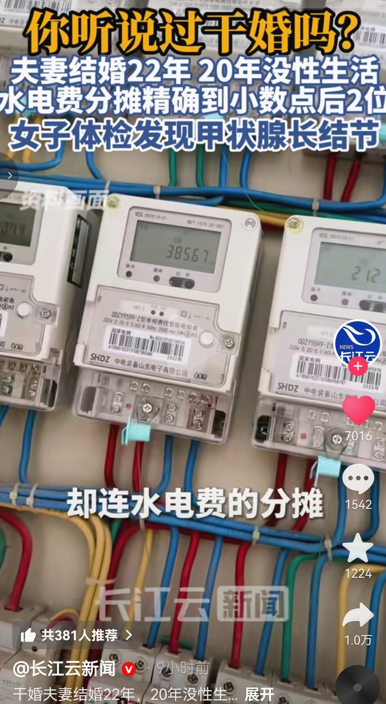 惊掉下巴!结婚22年竟有20年无夫妻生活,水电费算到分厘,这哪是婚姻,这是合租! 你敢信吗?一对夫妻同住一间50平的房子,结婚22年,整整20年没有夫妻生活,连水电费都要精确到小数点后两位,日子寡淡到像一潭死水,却没人先提离婚! 这对夫妻的婚姻,正是典型的“干婚”——仅维持名义或形式上的婚姻,实质里两人互不干涉、互不承担对彼此的义务。从22年前领了结婚证那天起,他们就开启了这场“合租式婚姻”: 刚结婚那两年还有点夫妻样子,之后直接进入“零交流”模式,20年里没牵过手、没说过几句掏心窝子的话,更别提亲密接触了,连日常对话都少得可怜。 ​ 住在同一个屋檐下,却比合租室友还生分:吃饭各吃各的,家务各干各的,连水电费都要拿计算器算得明明白白,精确到分厘,一分钱都不肯多付,把“AA制”刻进了骨子里。 ​ 明明是法律上最亲近的人,却连一句关心的话都成了奢望,日子过得像在熬日子,谁都不肯先捅破“离婚”这层窗户纸,硬生生在极度压抑的环境里,熬过了整整22年。 直到女方在一次体检中查出甲状腺长了许多结节,医生明确告知,长期情绪压抑、生活寡淡是重要诱因,这段看似“平静”的婚姻才彻底被撕开了口子——原来她早已在这场无爱的婚姻里,把自己憋出了病。直到这一刻,她才终于醒悟,果断选择结束这段消耗自己的“干婚”。 网友看到后评论说:“这哪是夫妻啊,这是签了终身合同的合租室友!我跟室友都比这亲,至少还会一起点外卖!” ​ 也有的网友说:“看完太扎心!没有爱、没有温度、连钱都算得这么清,这婚姻到底图啥?图个伴儿?这伴儿比空气还沉默!” ​ 还有的网友说:“我懂!很多中年夫妻就是这样,为了面子、为了孩子,硬撑着不离婚,最后熬出一身病,太不值了!” ​ 也有的网友说:“甲状腺结节就是情绪的报警器!这女的就是憋出来的!早离早解脱,何必在烂婚姻里耗死自己!” 两个人守着一间50平的房子,像两尊没有感情的雕像,白天各过各的,晚上各睡各的,连水电费都要算到分厘,连一句“今天吃什么”都懒得说,这种冰冷到骨子里的关系,比单身还让人窒息! 更让人窒息的是,他们居然硬撑了20年!明明早就没了感情,明明日子过得像坐牢,却因为所谓的“面子与习惯”,不肯迈出离婚那一步,最后把自己熬出了甲状腺结节——这哪里是为了“安稳”,这分明是在拿命换一段毫无意义的婚姻! 别跟我说“婚姻就是平淡”,平淡不是冷漠,不是零交流,不是算到分厘的算计!真正的婚姻,是哪怕吵架也有人哄,是哪怕没钱也有人一起扛,是哪怕老了也有人牵着手说说话,而不是像这样,在同一个屋檐下,活成了最熟悉的陌生人! 这件事戳破了多少婚姻的遮羞布:很多人明明在婚姻里受尽了委屈,却不敢离婚,怕被人说闲话,怕孩子受影响,怕自己一个人过不好,最后在“凑活过”里熬干了热情,熬坏了身体,熬成了一段没有温度的“干婚”。 可你有没有想过,比起“离婚”的代价,在烂婚姻里消耗自己,才是最昂贵的代价?比起别人的眼光,你的健康、你的快乐、你的人生,才更重要! 如今“干婚”这个词在社交平台上讨论度很高,有人觉得是“互不打扰的自由”,但更多人看清了真相:没有温度的婚姻,从来都不是救赎,而是牢笼。甲状腺结节是身体给的警告,也是婚姻给的警钟——别在烂关系里,耗掉自己的一生。 婚姻不是搭伙凑活的牢笼,是彼此温暖的港湾,在烂婚姻里耗死自己,不如潇洒转身,活出自己的光! 对此,你怎么看?