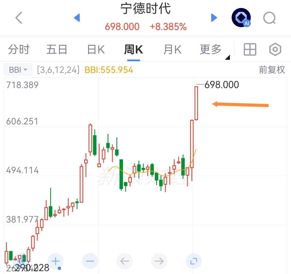 超3万亿市值锂电池大厂尾盘直线拉升超5%创历史新高,明天A股开盘锂电池与储能板块要起飞了吗? 上周五港股锂电池板块龙头股宁德将收盘集合竞价时直线拉升超5个点,股价不仅创出历史新高,还即将突破700点。 那么是不是意味着明天A股开盘,锂电池板块也将在宁德时代大幅上涨的带动下也同样走出一波大幅上涨行情,并且领涨A股两市呢? 个人观点:概率极大! 理由:近两周A股储能明显开始出现爆发式行情,作为储能电池的龙头股; 宁德的大幅上涨行情也实属情理之中,那么接下来由于战争冲突升级以及后续的一系列影响,储能的重要性会愈发明显; 也就是说储能的行情很可能还远远没有结束,行情还会继续。 那么上周五港股宁德集合竞价的直线拉升5个点,将会给明天A股开盘做多锂电池与储能板块也资金更多的信心。 重要性+信心=行情。 明天储能与电池大概率要起飞,领涨A股了! 以上仅个人观点,仅供参考。 不做任何投资建议。 上周五港股