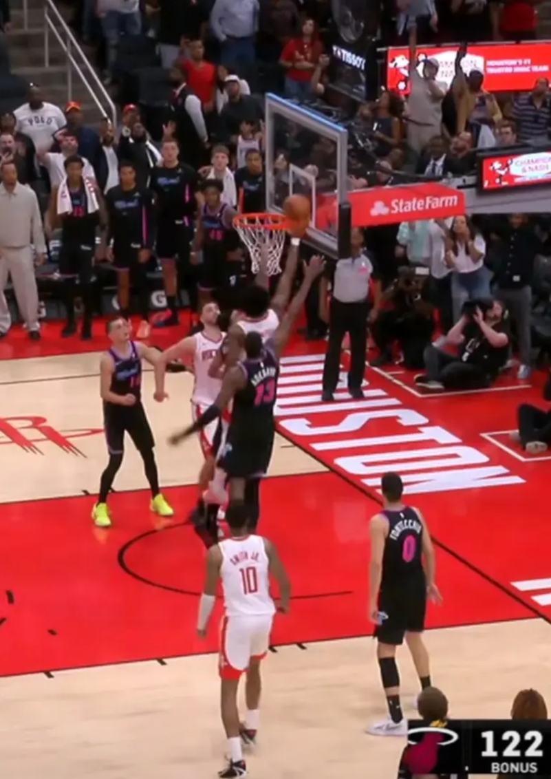 细看阿门最后这个补篮,反应速度真快啊,特别是原地起跳这一点,就跟腿上有弹簧一样,阿门这身体素质真是历史级别的了! 其实只要阿门别过多的去控运持球,不打控卫的阿门还是很香的,还看到有人说最后那个补篮是阿门运气好,球弹到他这边了,说这话的人挺好笑的,那我还说是阿门判断的好呢,预判了前场篮板落点,不会以为今天阿门的18个篮板都是“运气好”捡到的吧,何况其中还有7个前场板呢。 而且就算最后一球真是阿门运气好,球弹到了他身边,那也需要他的快速反应,才能压哨补篮啊,换个反应没这么快的,肯定就超时了