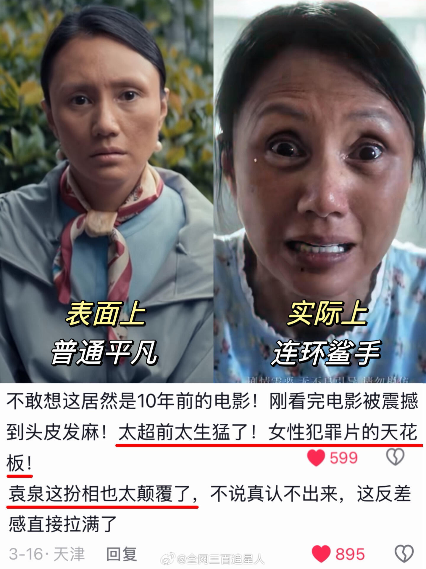 蜂蜜的针 超前 别说蜂蜜的针是十年前的电影,就说放到现在也很超前啊!就连片段都给我一种头皮发麻的震撼感,题材很棒,而且袁泉这个妆造也很用心,能够看出来全组上下的认真和努力,到时候一定会和好朋友一起去电影院看👀