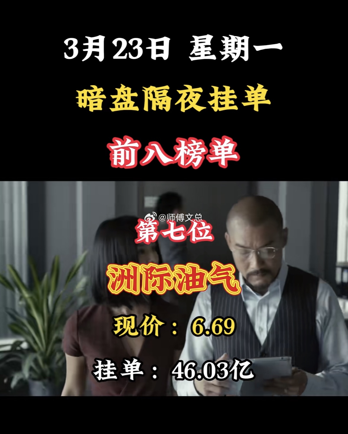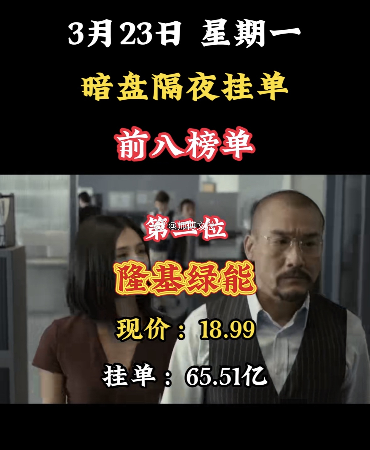 3月23日暗盘隔夜挂单前八榜单来了,这数据相当有看头!像中利集团以134.49亿