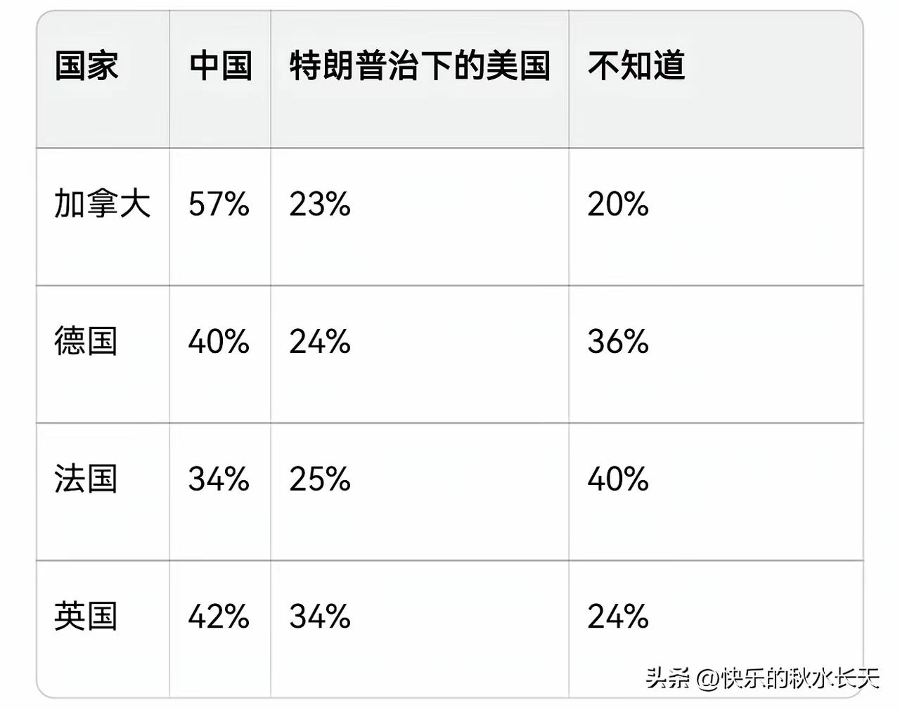 本来特朗普因为中东战事不顺而心情不好,美国一个著名网站搞出一个调查报告,让特朗普心情雪上加霜! 美国政客新闻网,搞了一项关于“中美二选一”大型跨国调查,在美国、加拿大、英国、法国、德国五国中,每个国家都调查超过2000名成年人。结果不得了,加拿大、德国、法国乃至英国的民众认知中,中国已经超越特朗普领导下的美国,成为更值得信赖的合作伙伴。 很震撼!这可都是美国最铁的盟国啊!如果这个著名网站,在全世界来一次普查,选择中国的数据可能翻倍。 这几个国家的民众都在思考,选择美国有什么好呢?美国动不动就挖他们身上的肉吃,动不动就想占领他们的领土。 而选择中国,就是选择过好日子,就是选择有肉吃、有汤喝! 这一数据标志着,国际力量对比正在发生历史性翻转,也标志着美国软实力在“美国优先”旗帜下的崩塌速度加快。 “中美二选一” 欧洲对特朗普 特朗普外交突袭