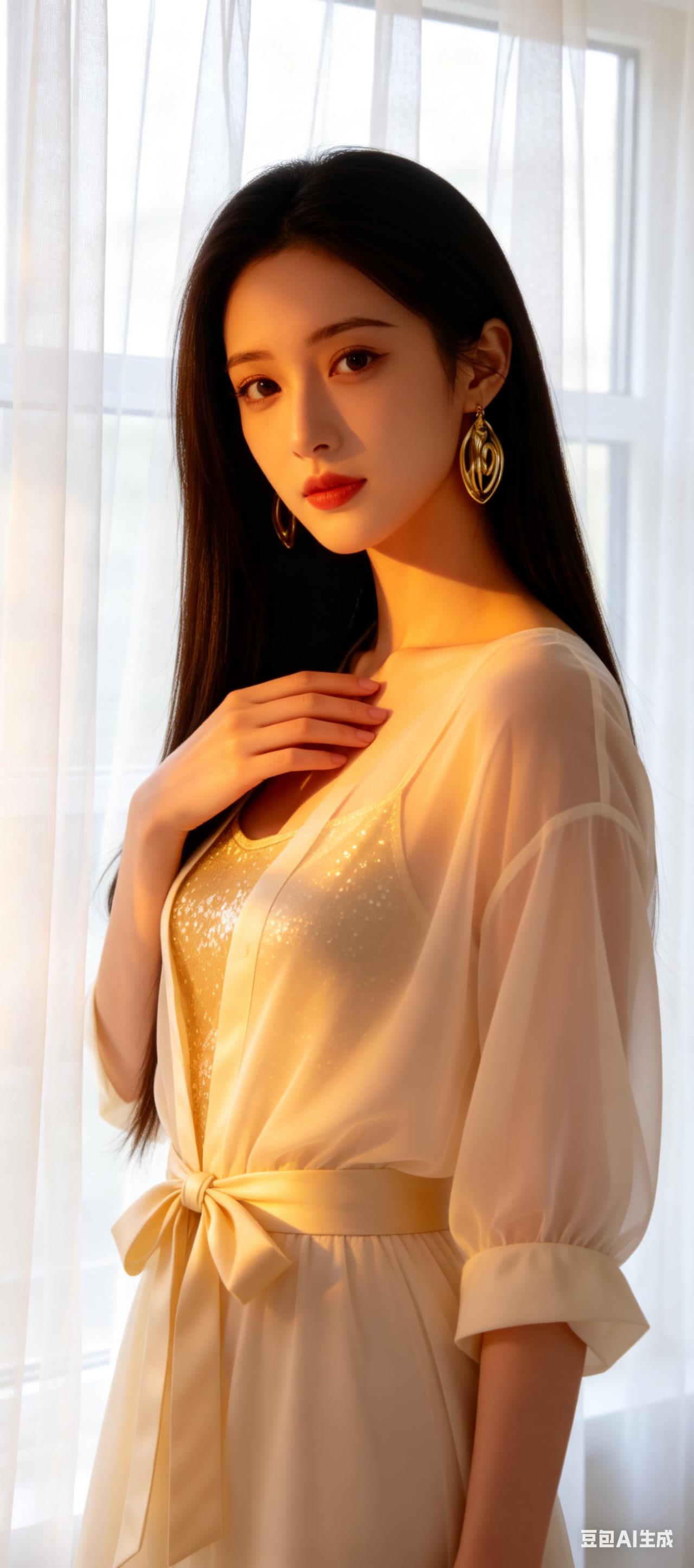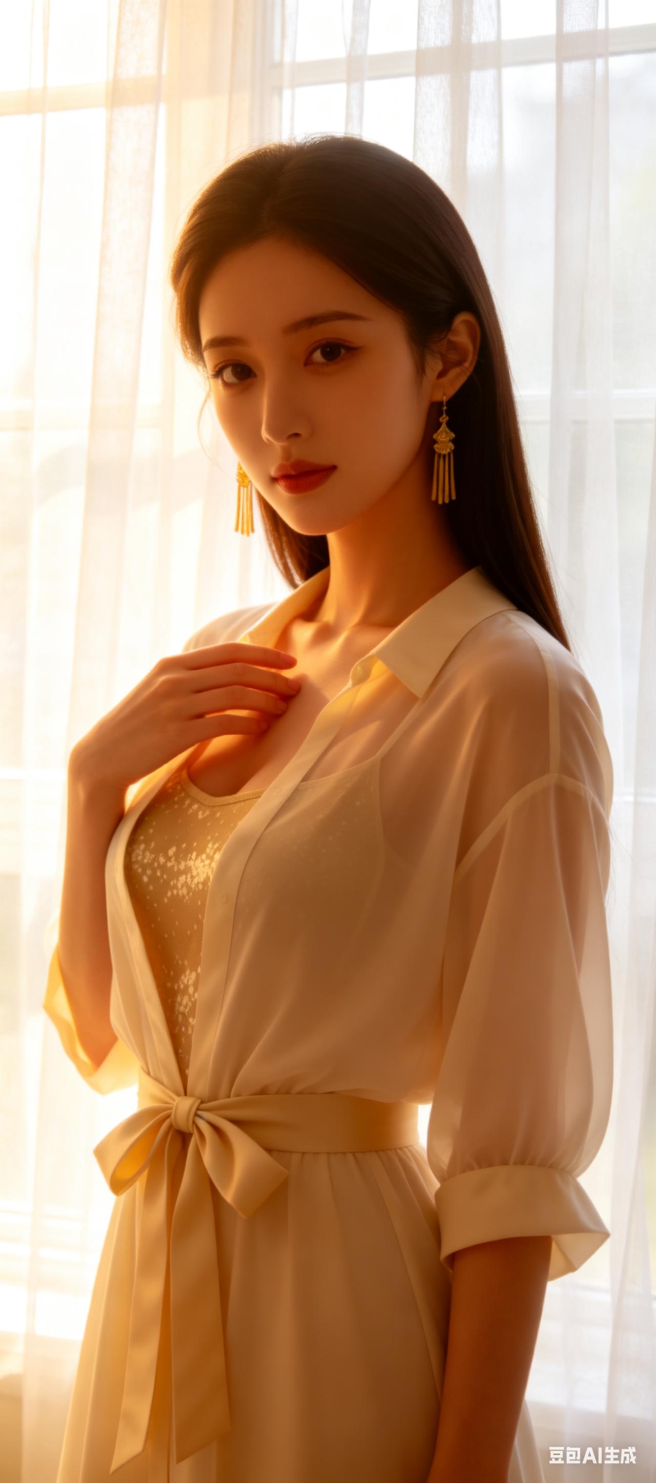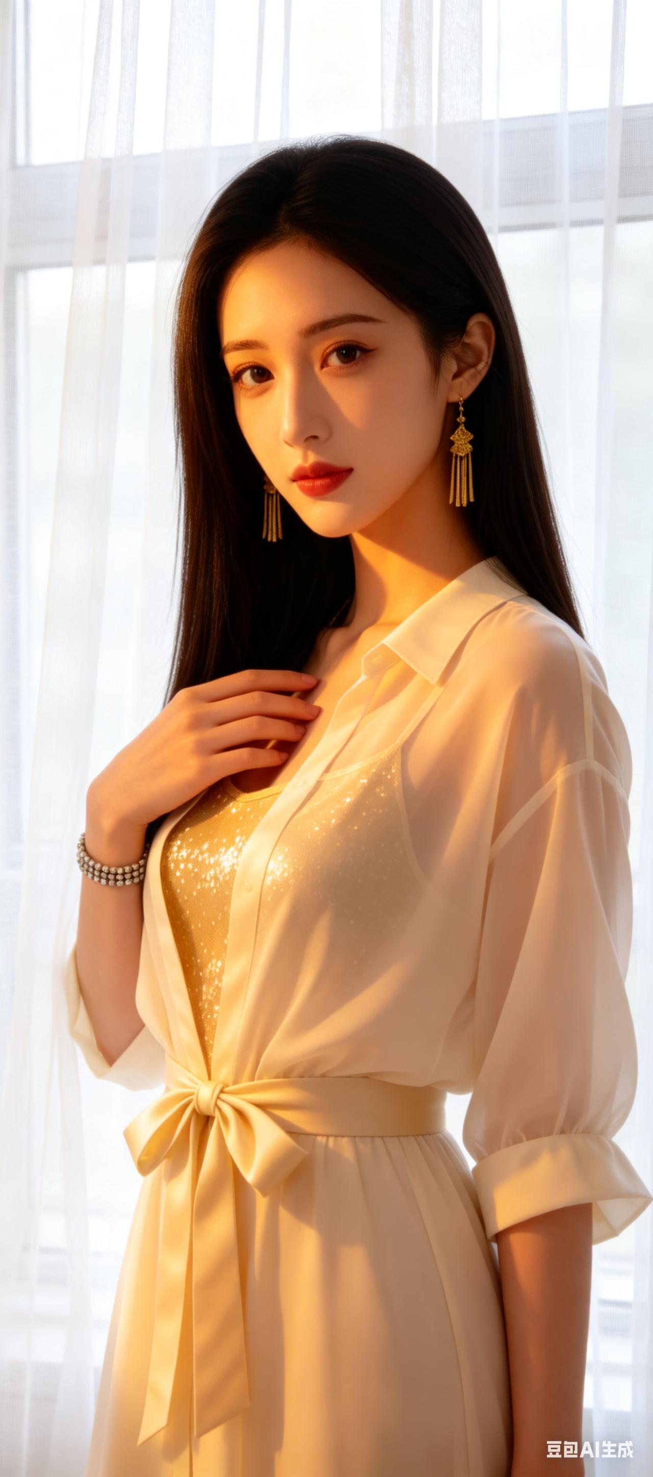 当复古旗袍撞上现代黑丝,是旧时光与新潮流的私密对话。她半倚在百叶窗边,黑色旗袍