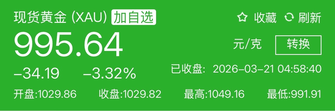 金价上演断崖式下跌一周时间!黄金可以持有观望了周一会不会掉出900?金价八连跌消