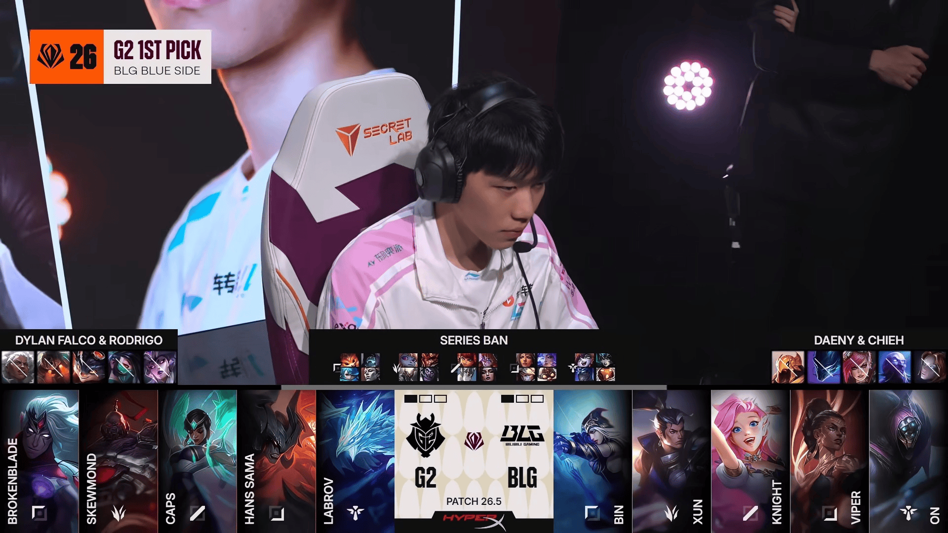 BLG对阵G2第三局BP:Bin末选贾克斯;knight梅尔打Caps冰鸟