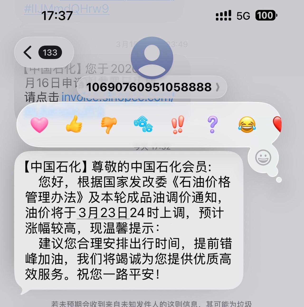 中石化第一次发短信提醒加油… 虽然我已经加满油 但这也太夸张了…. 目前还有25小时的加油机会… 95据说会迫近10块… 累😮💨【来自懂车帝车友圈】