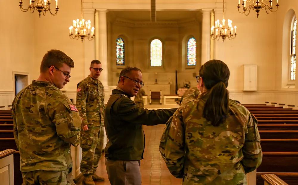 一场美国军人的婚礼。 2026年3月21日,隶属于美国哥伦比亚特区联合特遣部队,印第安纳州国民警卫队成员,美国陆军专员埃斯特·恩里克斯在弗吉尼亚州迈尔-亨德森霍尔联合基地旧军队教堂举行婚礼仪式时握着哈桑·阿尔普坎的手。 约有2700名国民警卫队成员支持“华盛顿.安全美丽”使命,协助大都会警察局维护全区居民、通勤者和游客的公共安全。