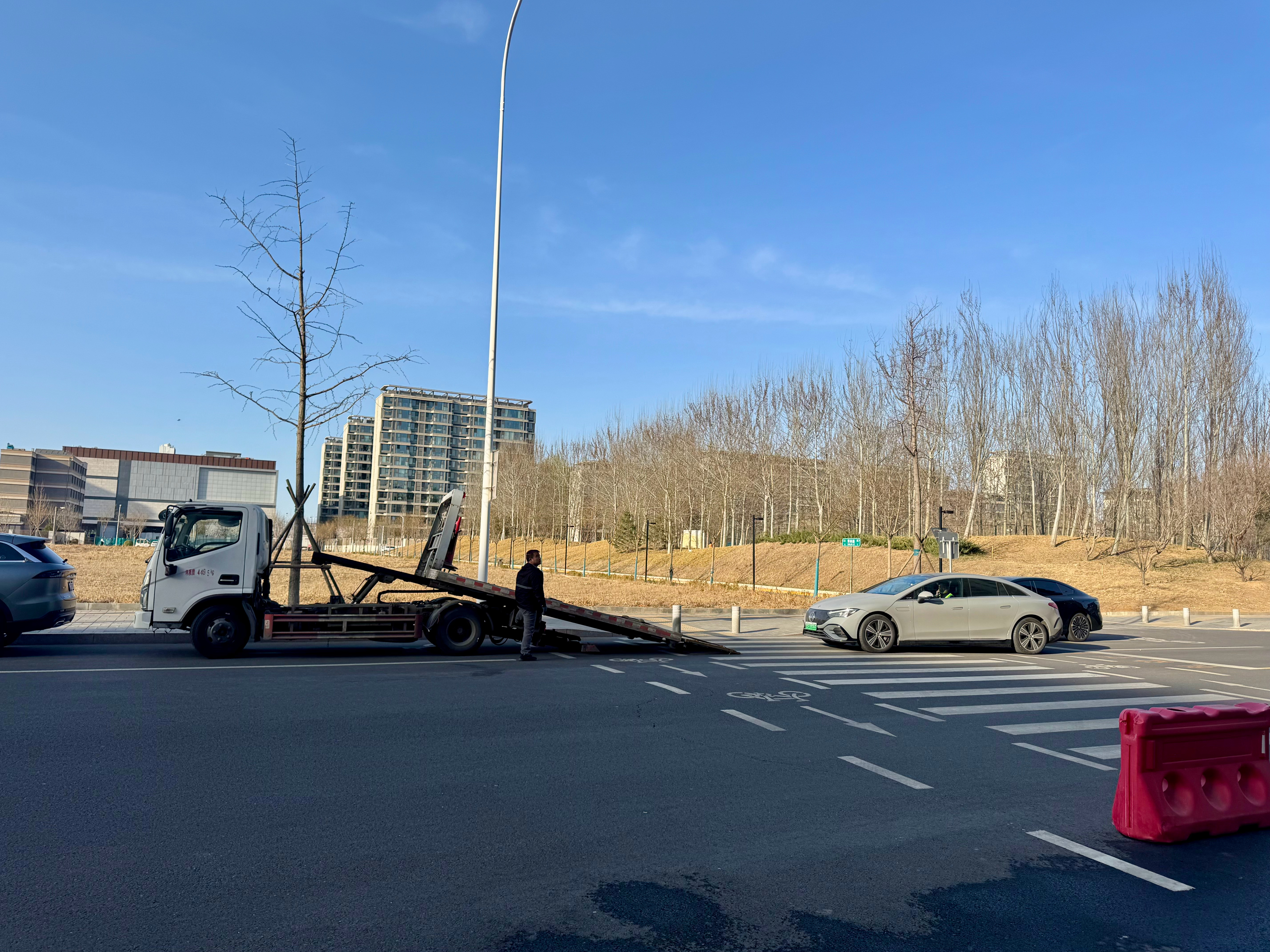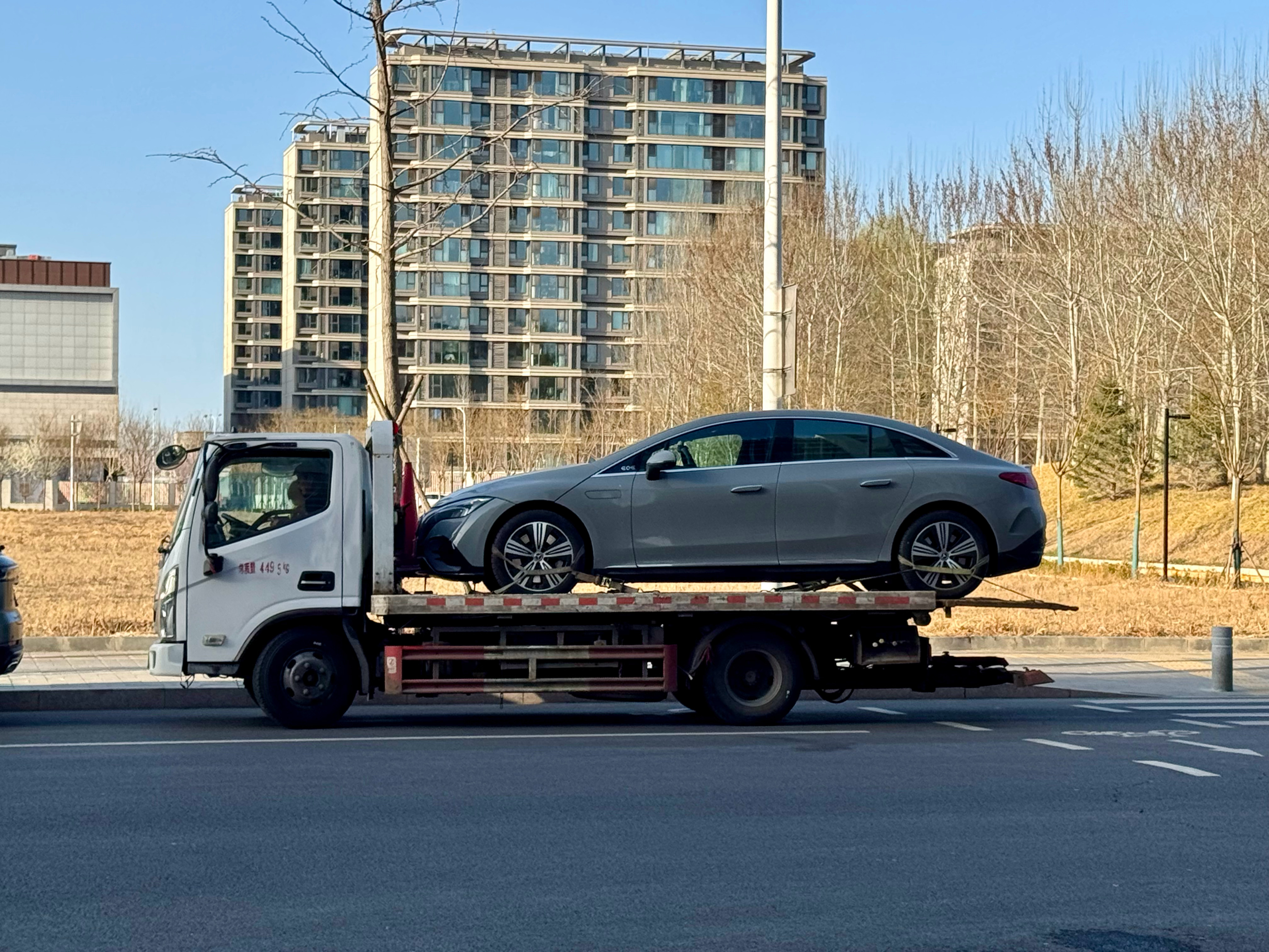 交通事故,外卖电动自行车全责,只刮花了右前轮毂,其它没任何问题,送店维修,奔驰4S店说上门来取车,我以为是代驾或者员工来开,哈哈哈哈哈哈!下楼来了个板拖车,这阵势哈哈哈,保安都来问我咋了这是。 非常规范的取送车形式,板拖可以避免很多路途中没必要的风险。李楠说道李楠说道大v聊车奔驰 北京