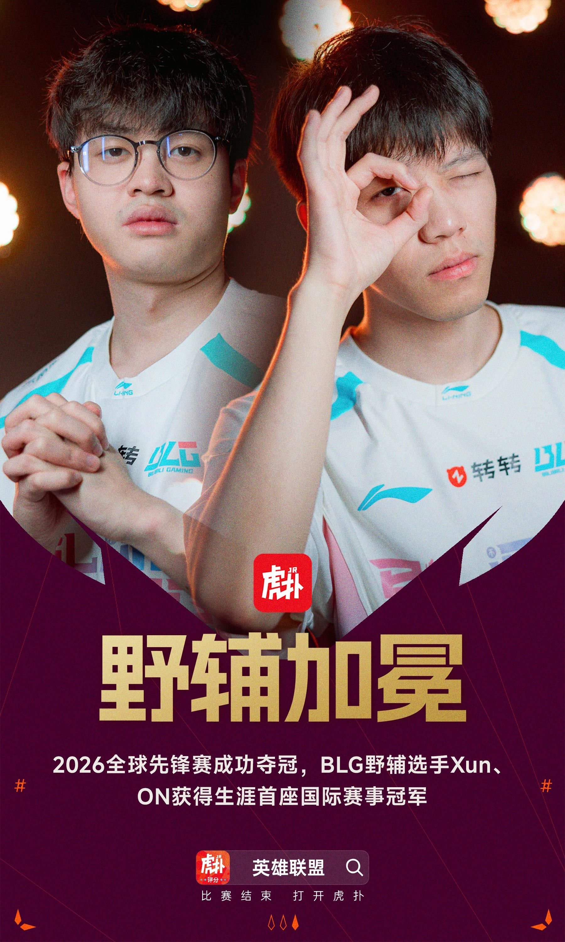虎扑03月23日讯2026全球先锋赛总决赛,BLG以3-1的比分战胜G2,夺得2026全球先锋赛冠军。
