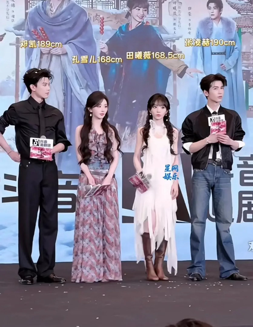 敢在张凌赫旁边穿平跟的小花没几个吧!对田曦薇的身高有了具象!