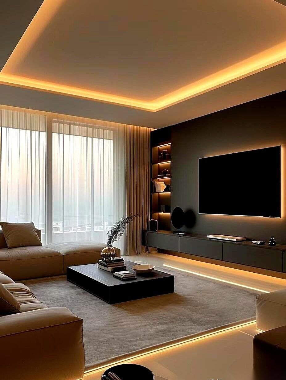 花了几十万装修,结果客厅看着又土又挤。钱到底花哪儿了? 别急着砸墙。问题不出在钱,而是你从一开始就想错了。 先把那个闪瞎眼的大水晶灯拆了,立刻。高级的屋子,从来不是靠一盏灯照亮所有角落。傍晚回家,不开主灯,只让墙角的灯带和沙发旁的落地灯亮着,光线不是直直地戳你眼睛,而是温柔地在墙上洗出一片光晕,整个屋子瞬间安静下来。 你家的墙,刷回最简单的大白或者浅灰色。所有花里胡哨的壁纸、硅藻泥,都像是在脸上画了个大浓妆,看着闹腾。深色只能是点缀,比如一两条黑色的金属压边,一小块深胡桃木的柜门,用来压场子,而不是抢戏。 再看线条。吊顶,别搞三层四层,直接拉平,用最窄的石膏线收个边。柜子,必须一门到顶,别装拉手,做成按压式的,表面就是一整块干净的板。门洞,要么就做成利落的直角,要么就做成柔和的圆弧。 还有你脚下那个滑溜溜、能照出人影的抛光砖,赶紧换了。高级感是摸出来的,不是照出来的。伸手去摸,是带着点糙面的微水泥,是哑光的岩板,是棉麻的沙发,是木头的温润。 最后,把东西都藏起来。 电视墙做满墙的隐形柜,所有充电线、遥控器、小孩的玩具,一股脑全塞进去。台面上,最多留三样东西,一个花瓶,两本书,够了。 记住,所谓的高级感,不是用钱往里堆砌东西,而是拼命地学会克制和留白。