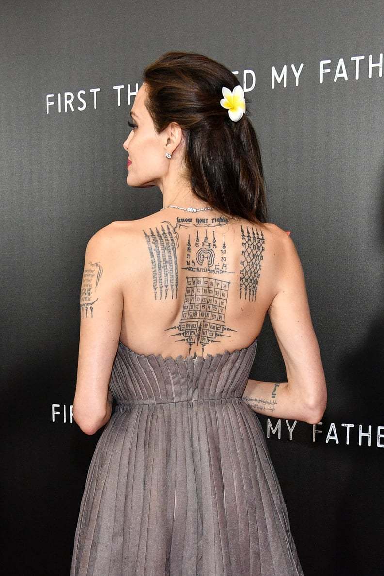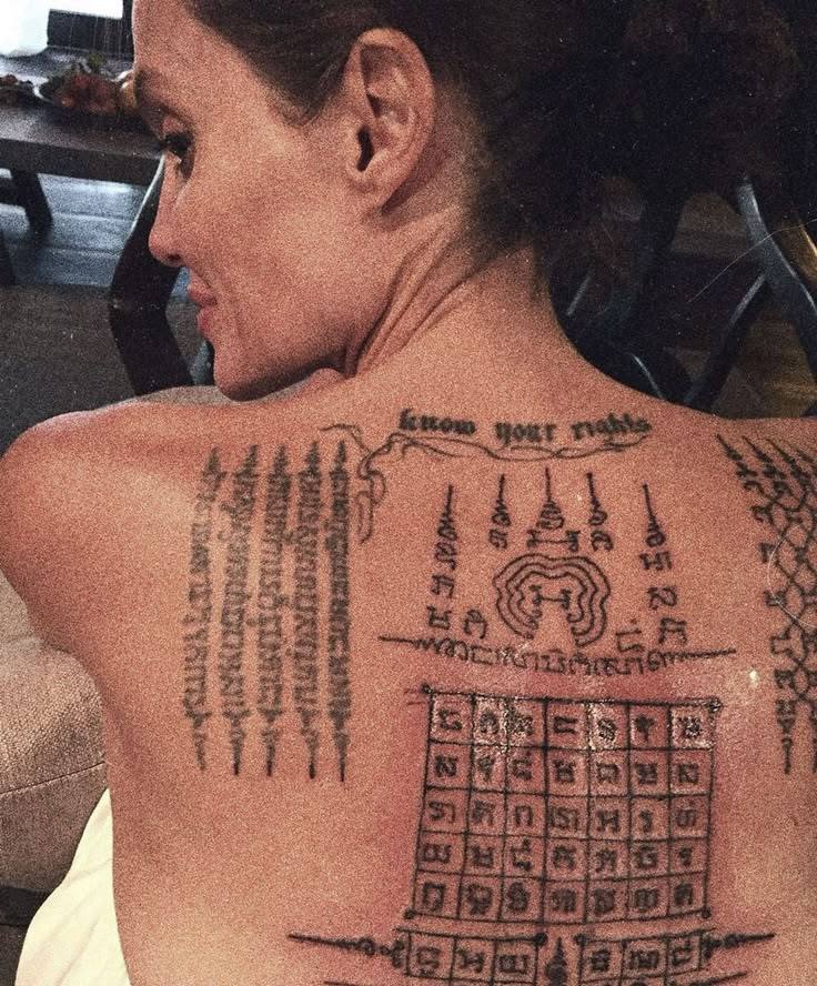 安吉丽娜·朱莉的背部纹身!¹ 每隔几年就发现她的纹身变多,现在后背已经这么多了!!