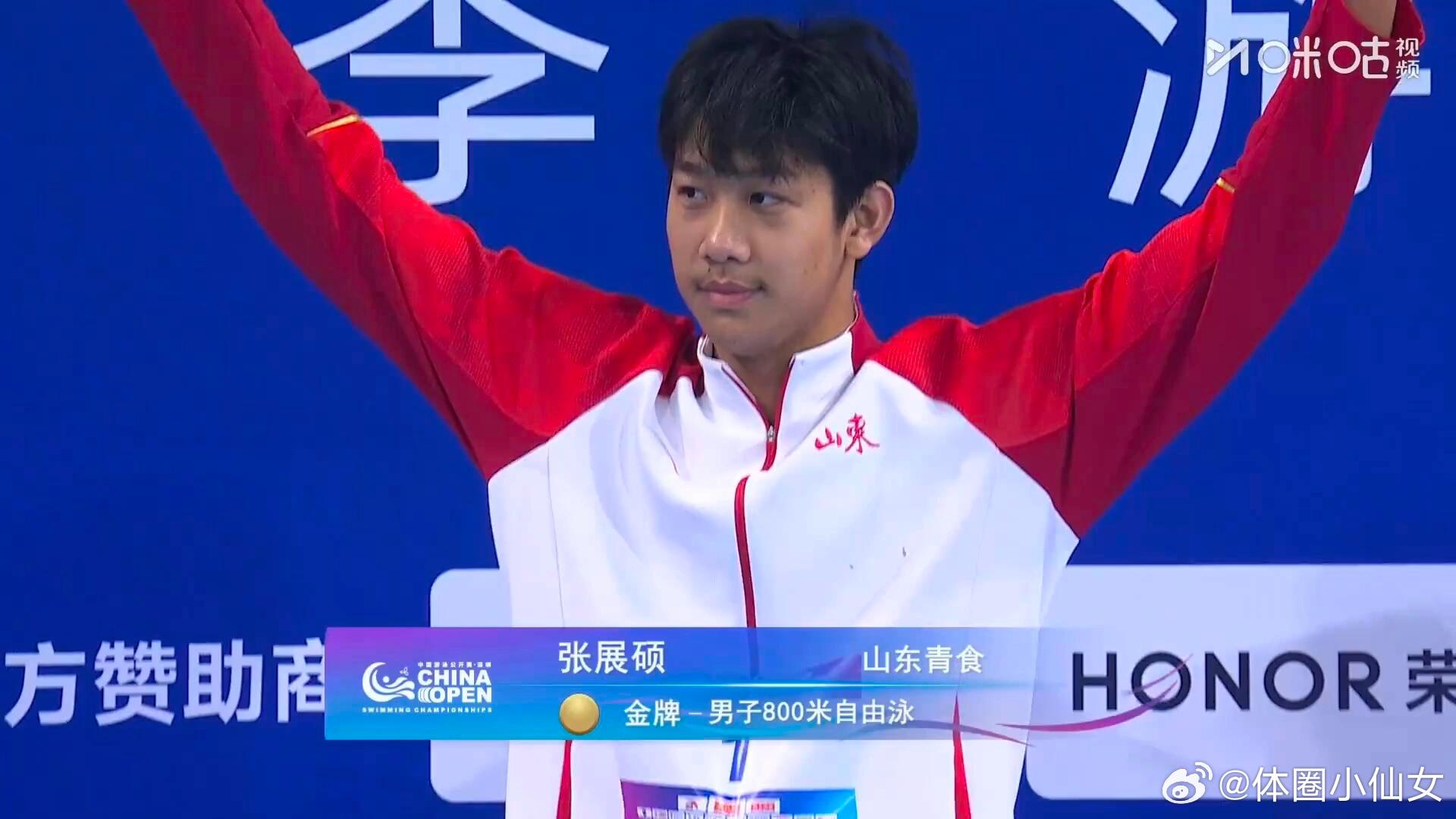 张展硕4金收官!张展硕在2026年中国游泳公开赛上包揽男子200米、400米、800米和1500米自由泳四枚金牌,且全部刷新个人最好成绩,成为本届赛事唯一的"四金王"。