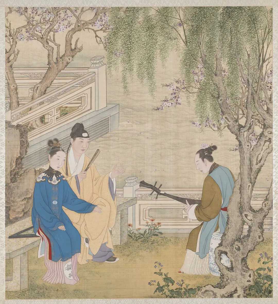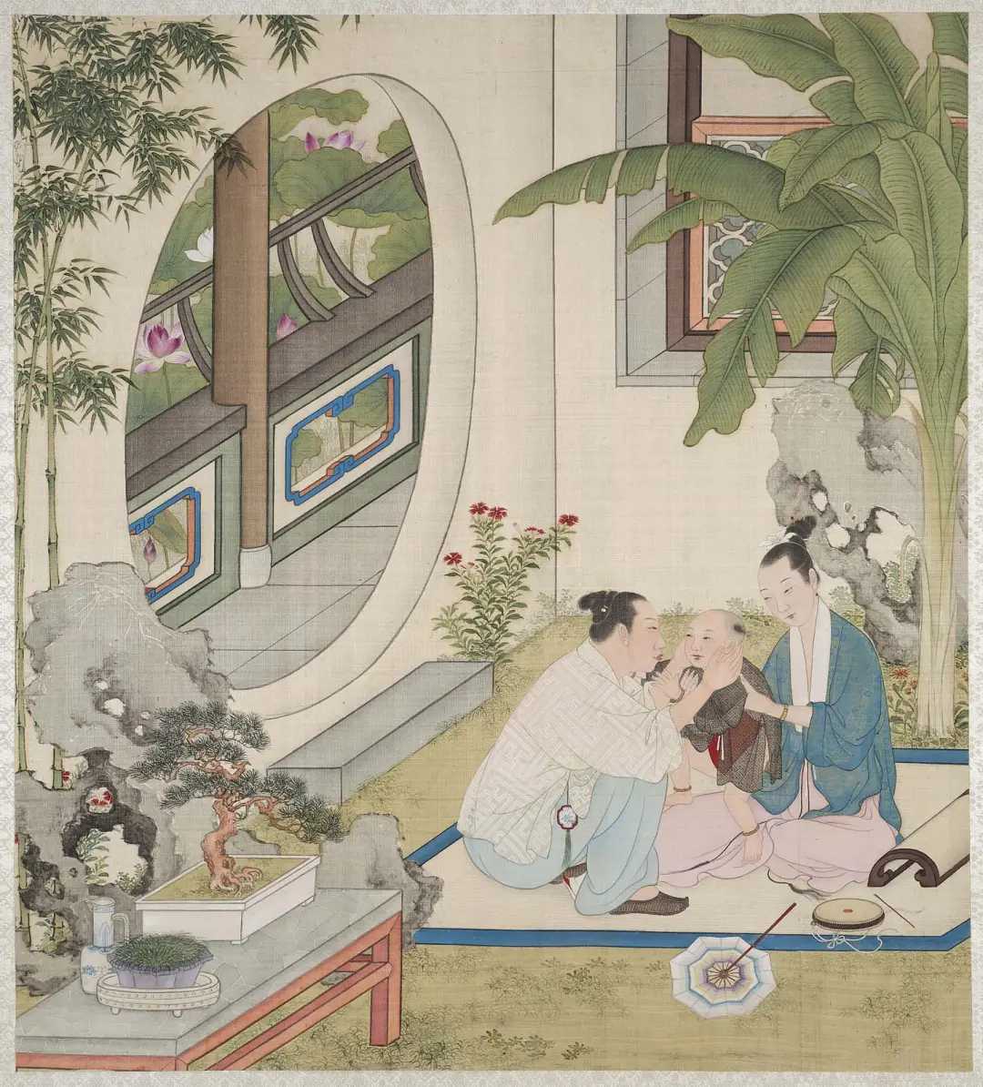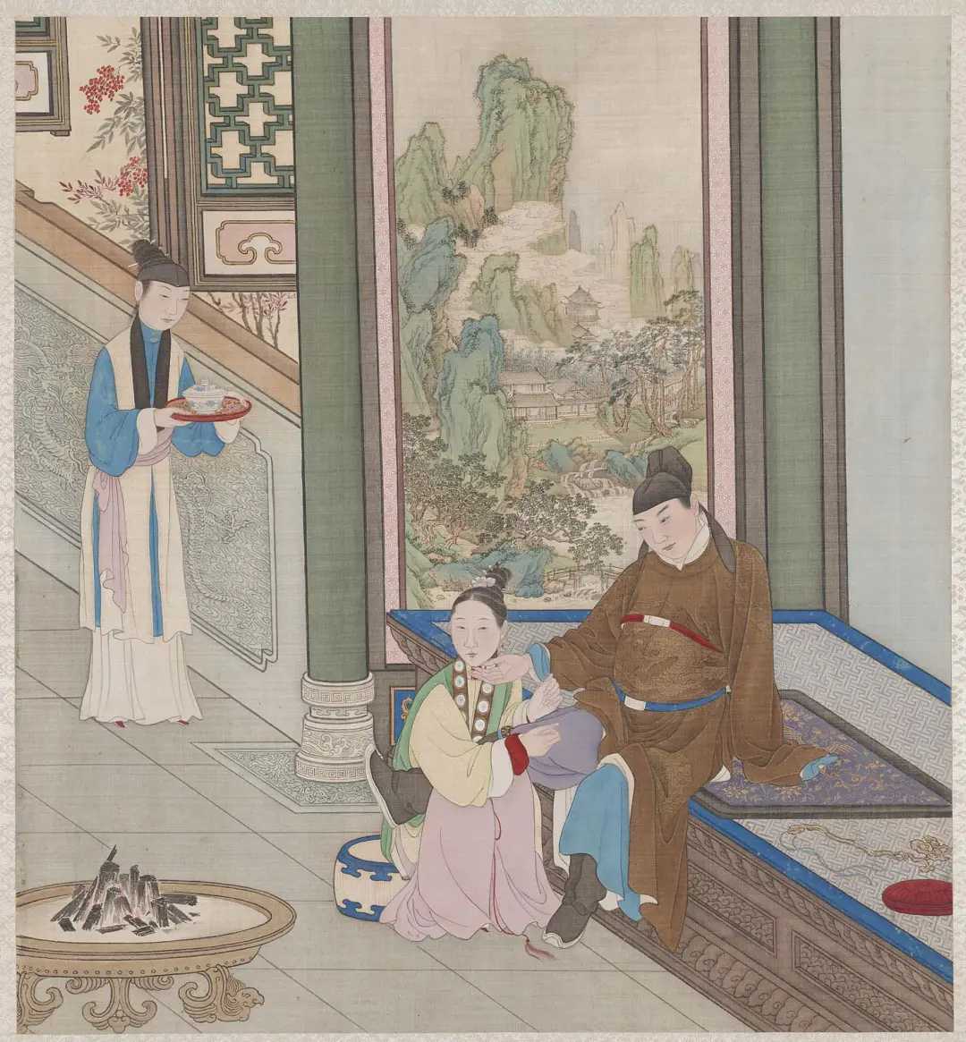 图册描绘清代亲王级别的家居生活场景,用笔精细,对人物服饰、神情及室内外陈设刻画入微。该图册后流散,其中十二开藏于美国波士顿美术博物馆,另外十二开曾由无锡秦家收藏。秦家后裔秦文锦于1904年创建的艺苑真赏社曾将其影印出版。该图册可用于研究明清生活习俗、服饰、家具。新城事遇见艺术