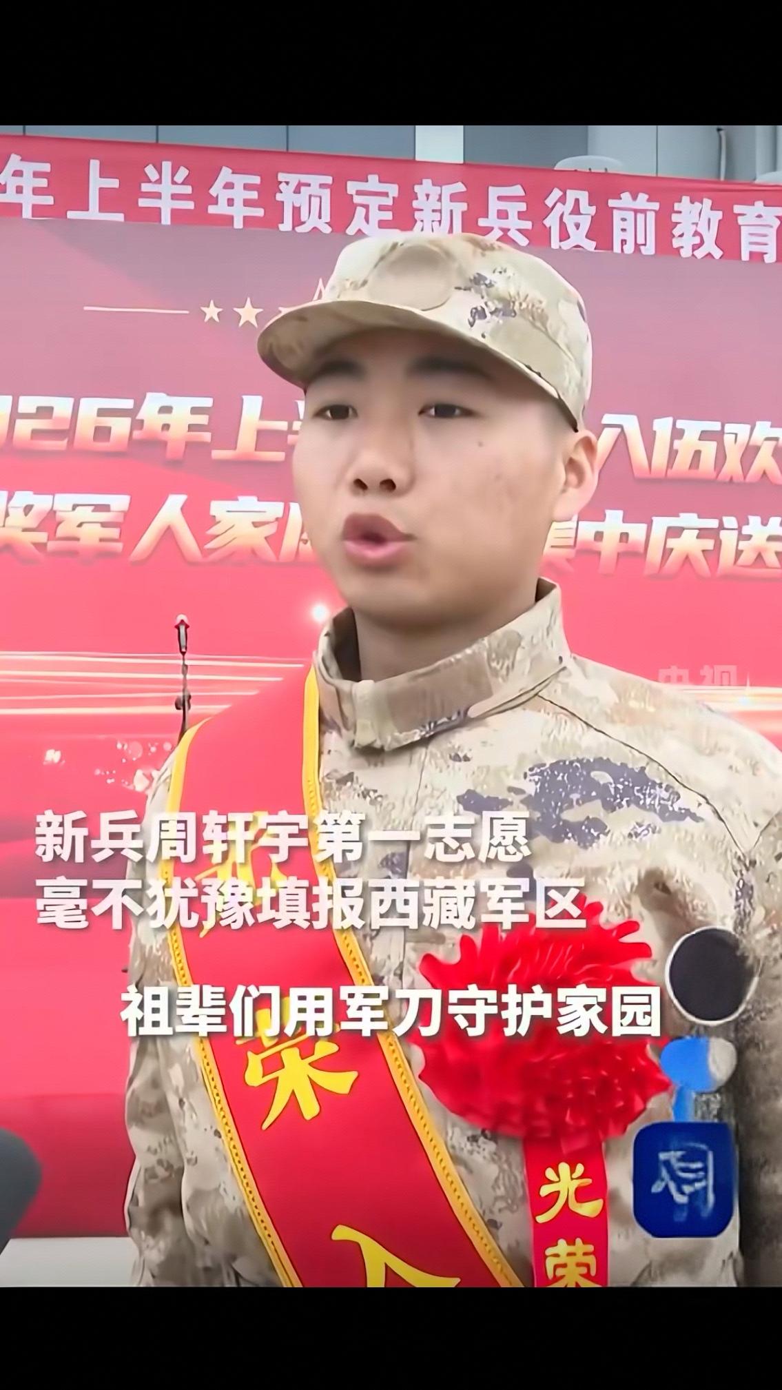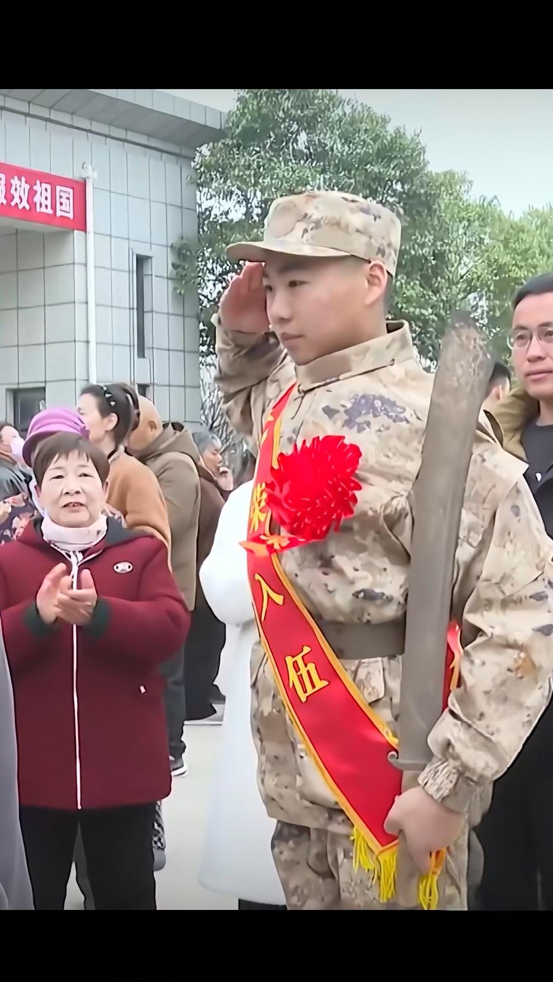 一把抗战军刀,递出三代人的戍边誓言 江苏沛县的送兵仪式上,95名新兵身着戎装、胸佩红花,集体宣誓入伍的瞬间,全网被一把沉甸甸的抗战军刀戳中泪点 。新兵周轩宇站在队伍前列,爷爷周士亮双手捧起传家宝刀,郑重交到他手中——这是高祖父当年抗战杀敌的佩刀,曾祖父带着它投身淮海战役,身留弹片直至离世,三代军魂,全在这把刀的寒光里 。 没人能不被这一幕打动。没有华丽的排场,没有煽情的话术,只有老人颤抖的指尖、少年挺拔的脊梁,还有刀身镌刻的岁月伤痕。周轩宇自幼听着祖辈的戎马故事长大,大爷爷、四爷爷皆是退伍军人,红色家风早已在他心里种下报国种子。今年征兵启动,他毫不犹豫报名,第一志愿坚定填报西藏军区,主动申请奔赴最艰苦的雪域边关 。 “祖辈们用军刀守护家园,我也要像他们一样,扛起武器,守护好祖国的每一寸土地!”周轩宇握紧军刀,一字一句掷地有声 。那双手接过的,不只是一件传家之物,更是跨越三代的使命接力——从抗日战场的浴血拼杀,到淮海战役的冲锋陷阵,再到如今雪域边关的戍边守防,保家卫国的信仰,从未断过传承 。 现场掌声雷动,无数网友红了眼眶:“这是最霸气的成人礼,最硬核的家国传承!”“军刀传下去,忠魂守山河,少年好样的!”在这个充满温情与力量的瞬间,我们读懂了何为家风,何为担当——不是空喊口号,而是父辈把信仰传给子辈,晚辈把使命扛在肩头 。 周轩宇即将踏上雪域征程,那把军刀将随他奔赴边疆,寒光映着雪山,刀刃守护家国。这把刀,是历史的回响,是精神的延续,更是中华民族生生不息的底气。愿少年此去,不负嘱托,不负荣光,让三代忠魂在雪域绽放新的光芒!入伍三月铸英魂 抗战老兵后人