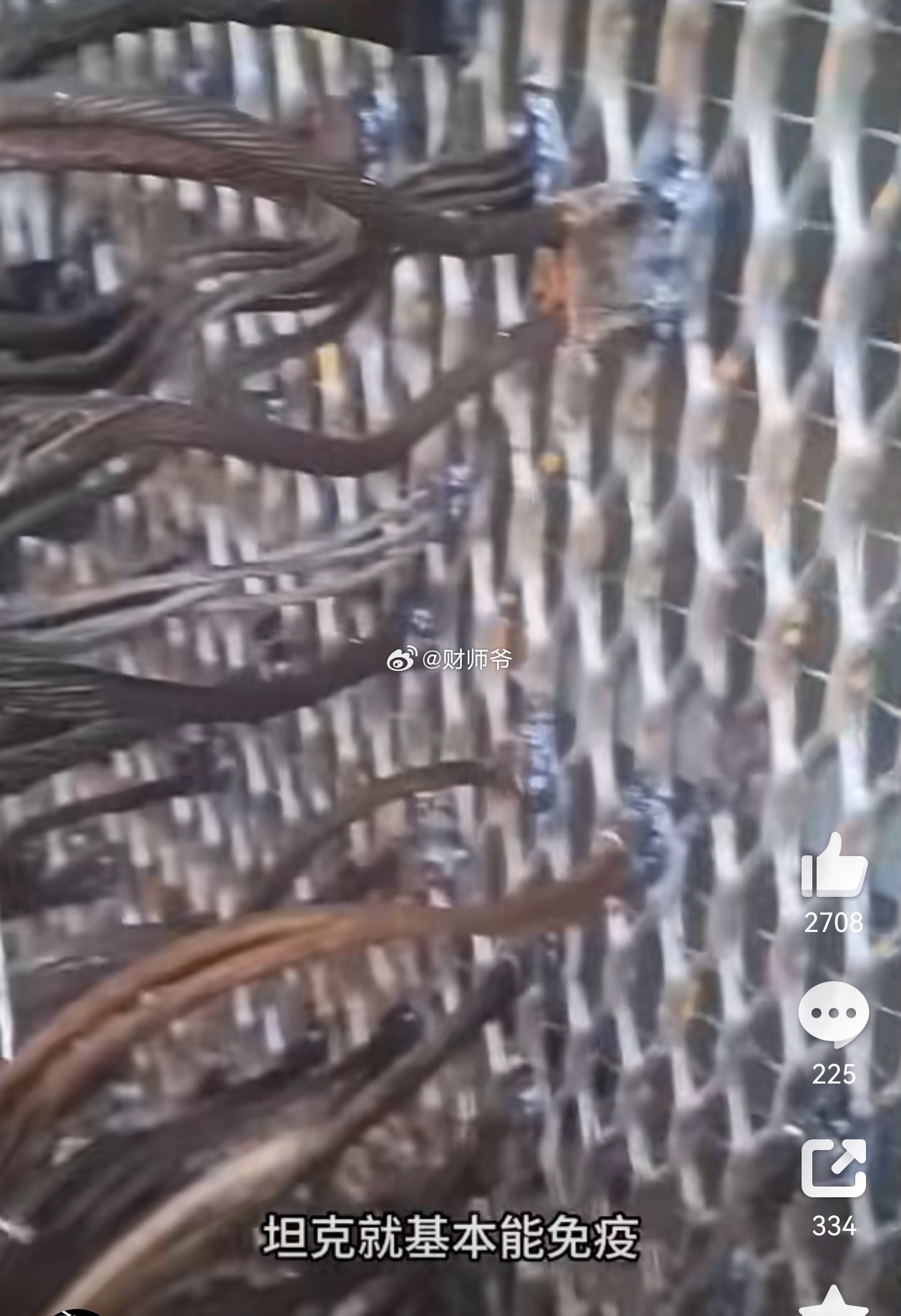 当你在俄乌战场看到这种“爆炸头”的坦克,不要以为它浑身“长满了树枝”。这些是为了防御无人机攻击的“钢丝绳外扎”坦克,全部是人工手搓打造的“钢丝绳改造款”。这是俄乌士兵实战中总结出来目前最廉价的防御无人机攻击的方式,这种构造能有效分散自杀式无人机爆炸的力度。