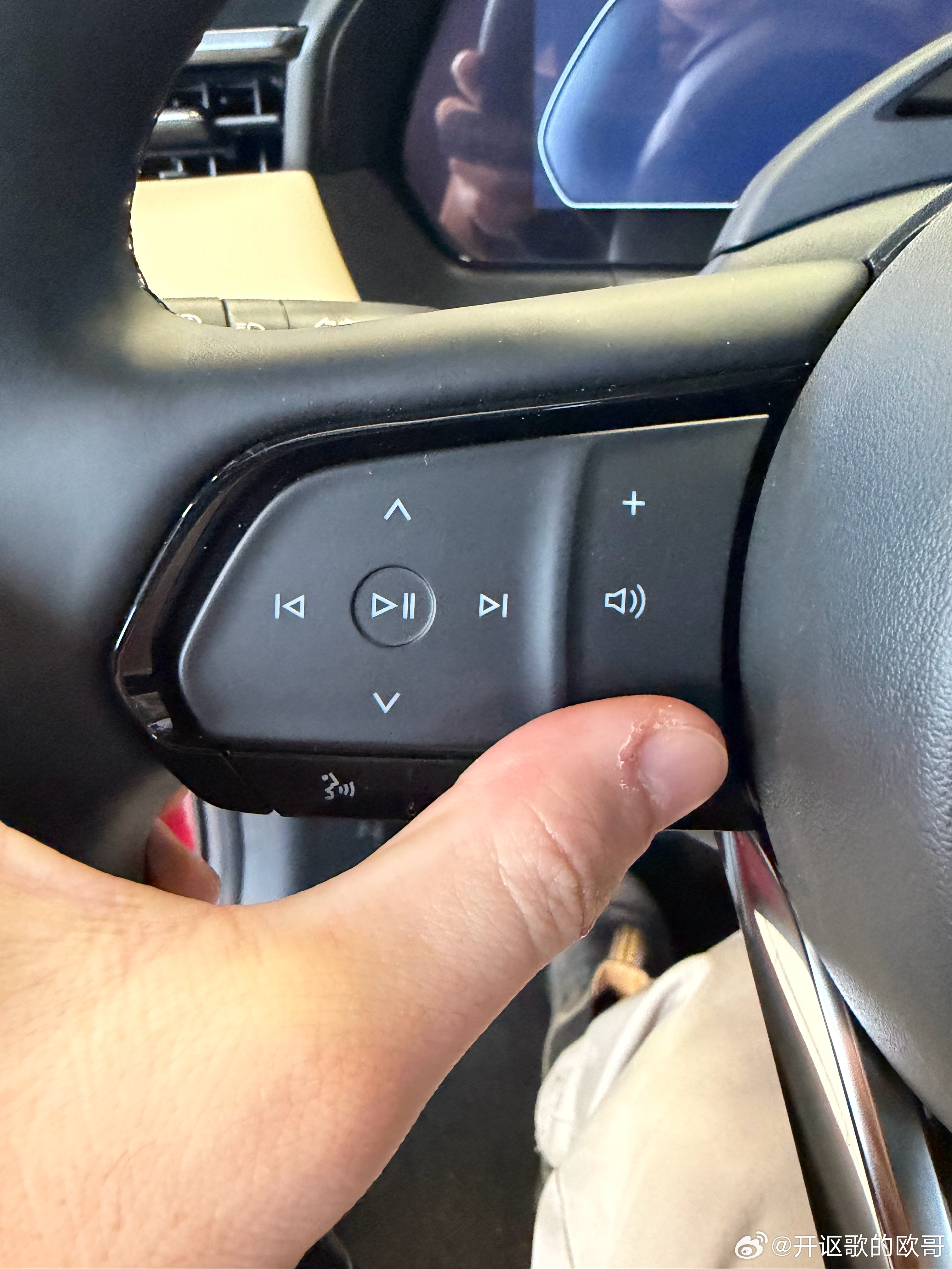 座椅的人机工程学,可以说有优化,但是还是有很多问题,对我而言,前排座椅与方向盘的位置有些远,开的时间长了我会觉得累。顺便说说方向盘,虽然握感挺不错的,但是音量调节的案件很远,握在3-9点方向不能用大拇指够到(如图可见)。后排空间比上一代更大了,但是座椅的长度很短,实际体验效果依然不算好。