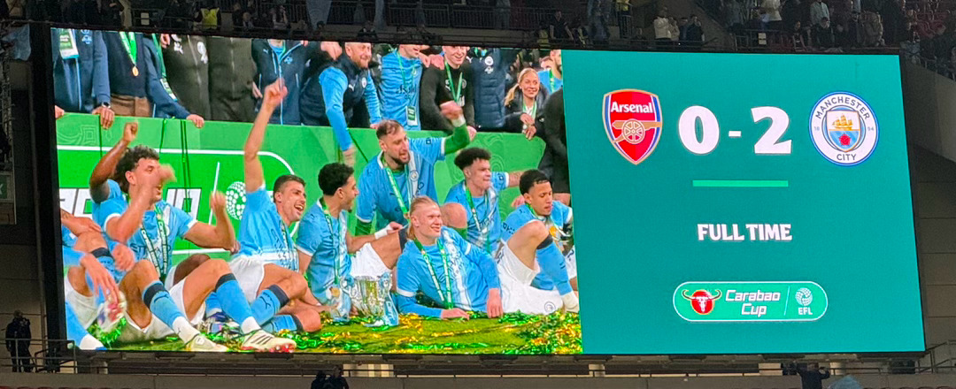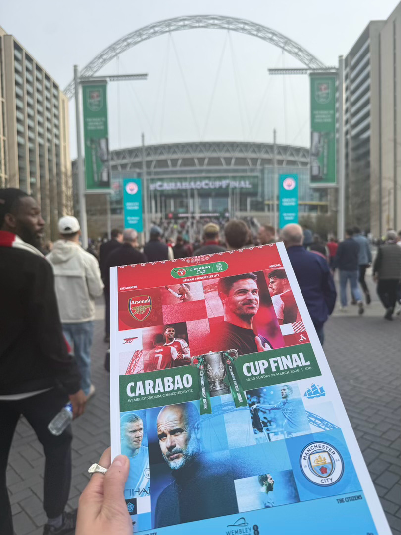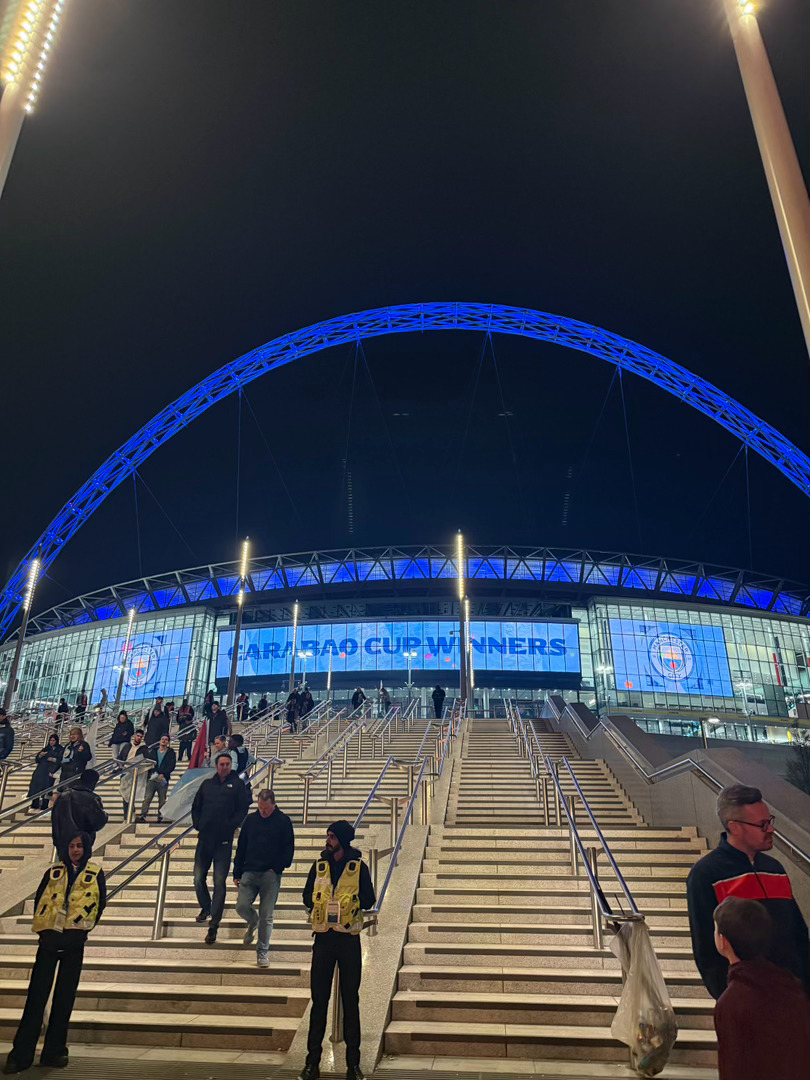 下午去看英联杯决赛了,其实本来没想去因为票价有点小贵,问了好几次认识的票哥基本都是2000-3000rmb还是上层看台,结果今天比赛前两个小时被给了张票,还是下层看台的,立刻跳起来出门…. 然后又是地铁坏了经历换线等一些列波折才抵达球场….. 虽然上半场有点沉闷,下半场还是很有意思的,恭喜曼城夺冠,瓜迪奥拉拿到了生涯第五座联赛杯的冠军,阿森纳的球员们和阿尔特塔还需要修炼….. 希望下次温布利的蓝色是因为某只西伦敦的球队🥺