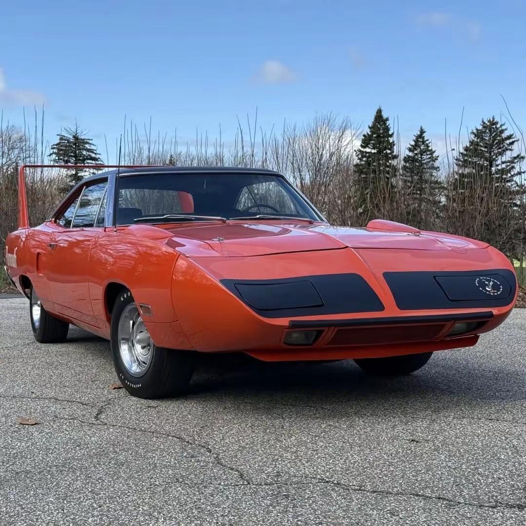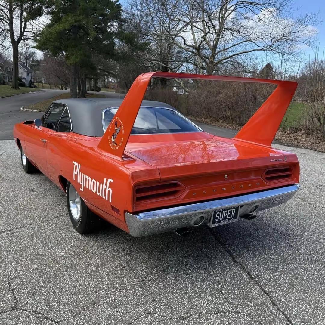 1970年,Plymouth Superbird 作为专为 NASCAR 赛场规则而生的 homologation 车型,仅在单一车型年生产,全球限量 1,920 辆。它的诞生本就带有强烈的竞技目的——通过极端空气动力学设计,在高速赛道上压制对手,也因此成为美国肌肉车历史中最具辨识度的存在之一。动力层面,这台车搭载一台 440ci(约 7.2 升)V8 发动机,配备三只 Holley 双腔化油器,匹配三速 TorqueFlite 自动变速箱以及 Sure-Grip 限滑差速器。这样的组合并不追求精致,而是以直接、粗暴的动力输出见长,油门响应厚重而富有冲击力,代表了那个年代典型的美式性能哲学。外观上,Tor-Red 高饱和红色车漆搭配黑色内饰,配合标志性的加长鼻锥、可翻折隐藏式大灯以及高耸尾翼,让整车宛如一件为速度而生的工业雕塑。15 英寸 Rallye 轮圈、助力转向与助力制动等配置,则在性能之外保留了一定的日常可用性。在今天看来,这样一台 Superbird 已不只是性能机器,更像一枚被时间凝固的文化符号——它承载着 1970 年代美国对于速度、个性与张扬表达的全部想象,也正因如此,才让无数收藏者为之着迷。Nascar 经典情怀老车 汽车知识分享 赛车