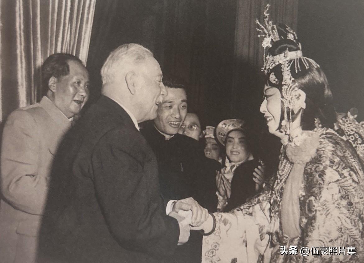 1957年4月18日夜晚,苏联最高苏维埃主席团主席伏罗希洛夫在毛泽东主席等陪同下,欣赏中国传统戏曲晚会结束后,向以梅兰芳为首的艺术家们表示祝贺与慰问。当晚的演出阵容堪称顶级,京剧大师梅兰芳与姜妙香合作演出了经典剧目《洛神》。梅兰芳当时已年过六旬,是中国戏曲界的旗帜,他的出场代表了中方最高的艺术礼遇。