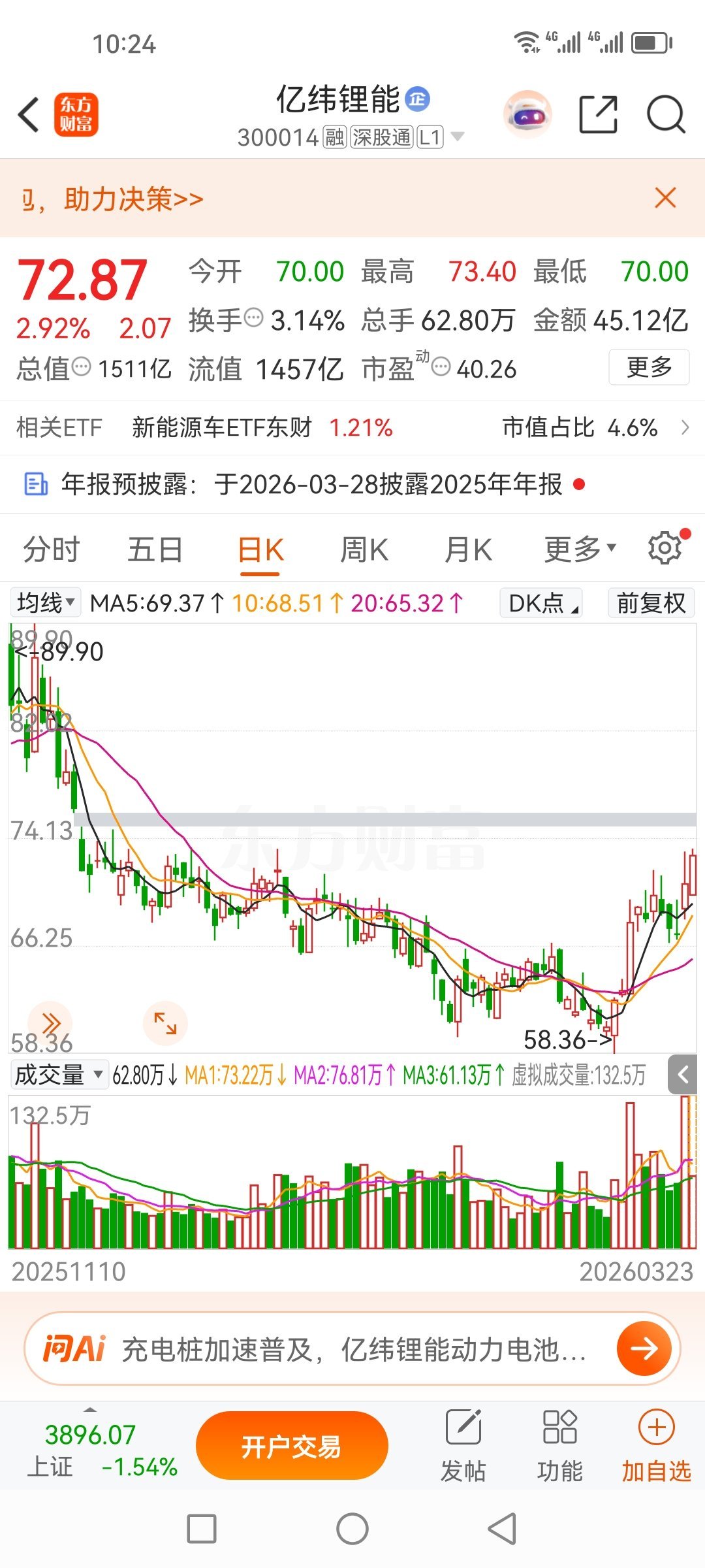 17日盘前分享的亿纬锂能300014,开始迎来了吃肉行情了,正在稳步推进。
