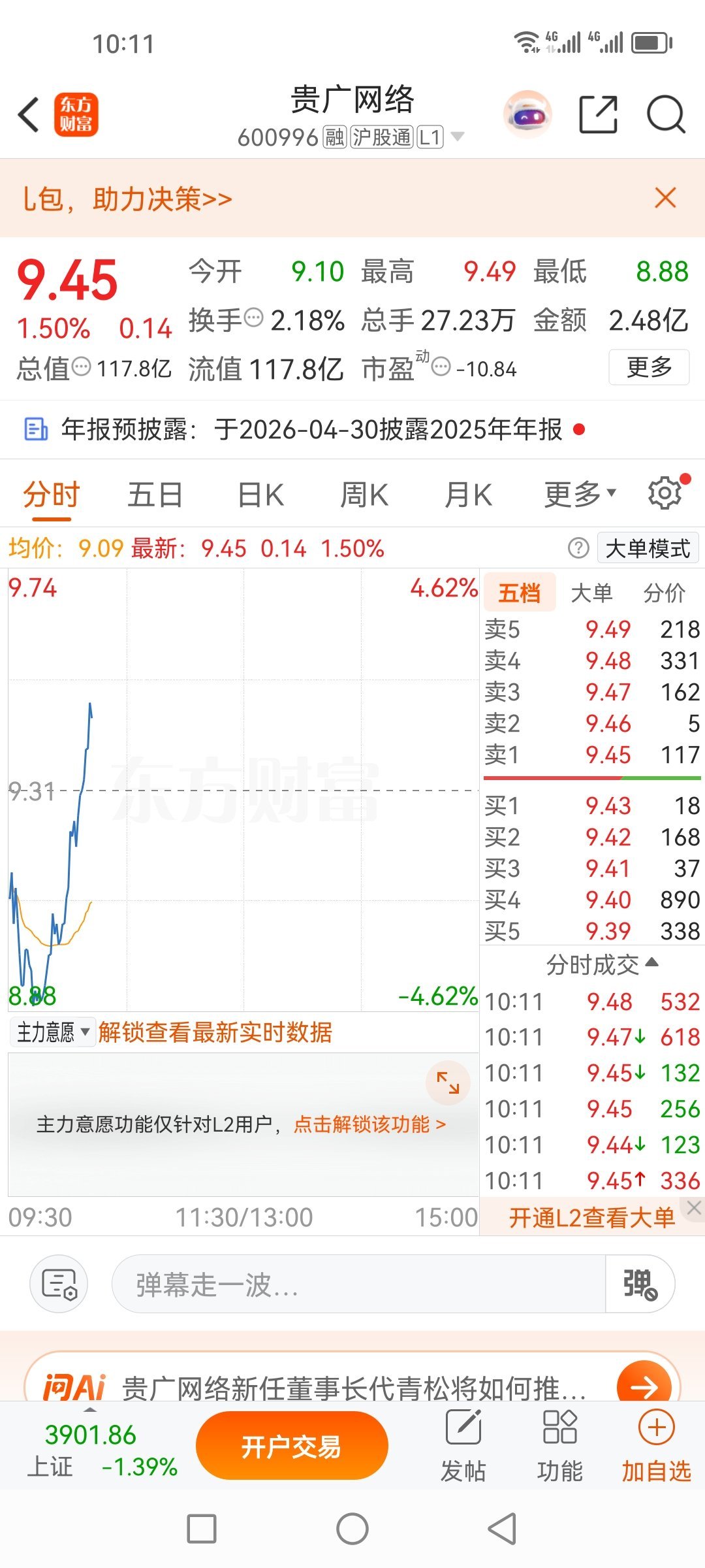 19日盘前分享的贵广网络600996,开盘已清仓,后来又低吸回来,现在继续涨,这