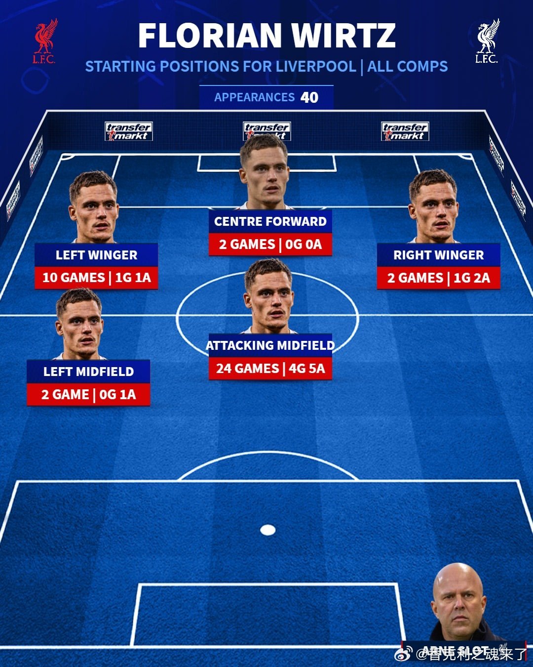 维尔茨最高光的位置应该是进攻中场 4球5助攻利物浦