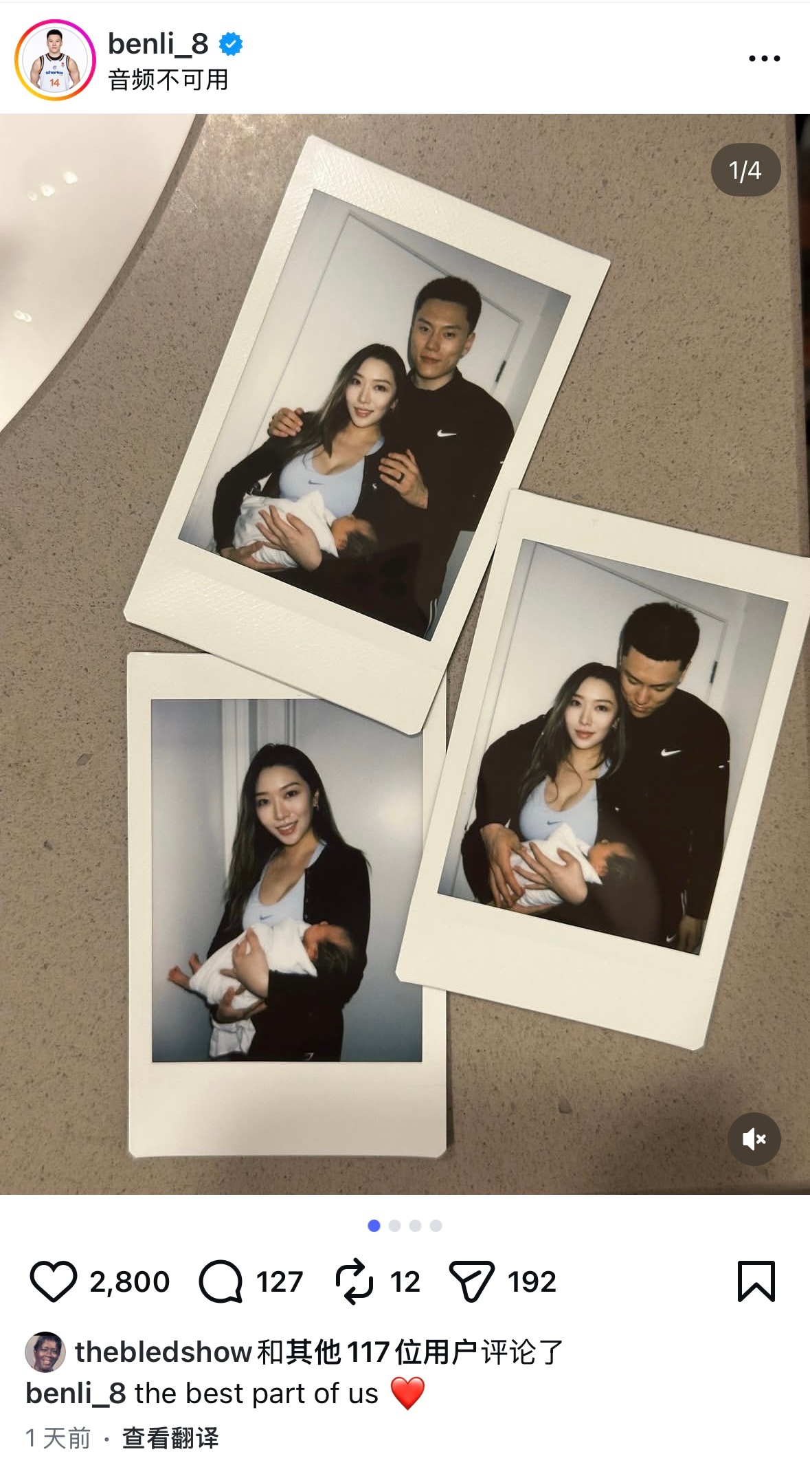 李弘权更新社媒:The best part of us❤️