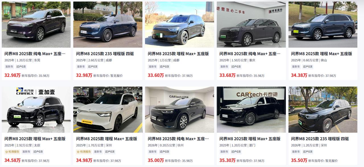 有人问:二手问界M8能不能买?我的回答是,当然可以,但要注意早期版和改款版根本不是一台车。 问界M8是鸿蒙智行家族的重磅车型,鸿蒙座舱和ADS智驾系统同样是它的核心卖点。但二手市场里,2025年上半年交付的早期版和2025年下半年之后的改款版,产品力差距大到像两代车——买错了,不是捡漏是踩雷。 先说早期版为什么慎入。早期版底盘调校偏向舒适但缺乏高级感,后悬架为传统多连杆,没有空气悬架,滤震表现中规中矩;智驾方面,部分车型未标配激光雷达,搭载的ADS 2.0仅支持高速NCA,城市智驾体验受限;最让人头疼的是二手折价率偏高,30万左右入手,开一年残值可能只剩20万出头。 改款版就完全是另一台车了。2025年下半年之后的M8全系标配192线激光雷达,ADS 3.0智驾系统实现车位到车位全场景辅助,城市环岛、窄路掉头都能从容应对;底盘升级为闭式空气悬架+CDC可变阻尼减震器,过坑洼路面时车身姿态更稳,舒适性直接看齐问界M9;座舱也更新到鸿蒙4.0,超级桌面、多设备流转无缝衔接,轴距保持3105mm但座椅布局进一步优化,三排进出更便利。 问界M8的通病是高速行驶时A柱风噪偏大,部分车主反馈超过110km/h后噪音较为明显;另外,增程版在低电量急加速时增程器噪音略大。买车前最好专门跑一段高速路段试驾,看自己能否接受。纯电版电耗约18kWh/100km,家充每公里不到1毛钱,增程版混合使用也就2-3毛,用车成本确实低。 所以我的建议是:只买2025年下半年之后生产的改款M8,首选Max版(带激光雷达+ADS 3.0+空悬),二手价28-35万。早期版即便再便宜都不建议入手,智驾体验和底盘质感都差了一个时代。【来自懂车帝车友圈】