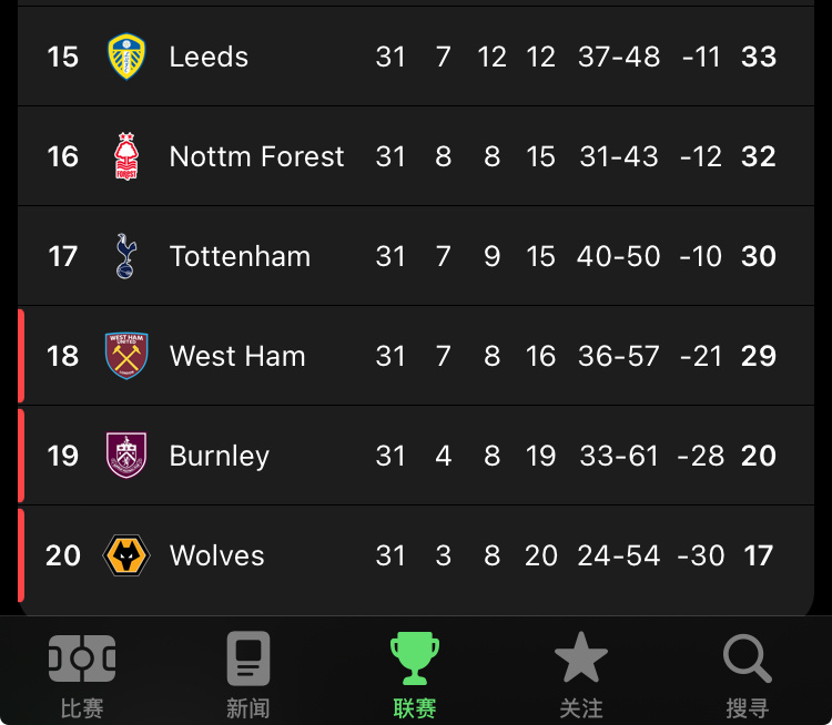 热刺降级的可能性有多大?很大。目前除了铁定降级的狼队和伯恩利以外,热刺和西汉姆