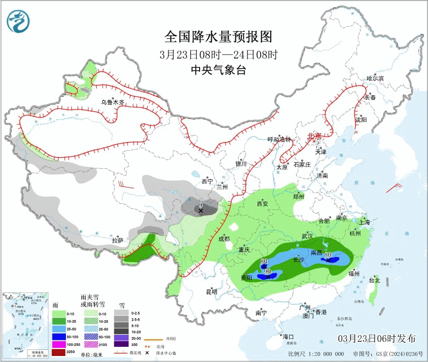 此外23-26日,青藏高原东部多雨雪天气,西藏东部、青海东部和南部、甘肃南部、川西高原北部等地部分地区有中到大雪、局地暴雪,西藏东南部有中到大雨、局地暴雨。北方地区因为高空槽东移影响,新疆在24日、西北地区东部到华北在27-28日也将有雨雪过程。