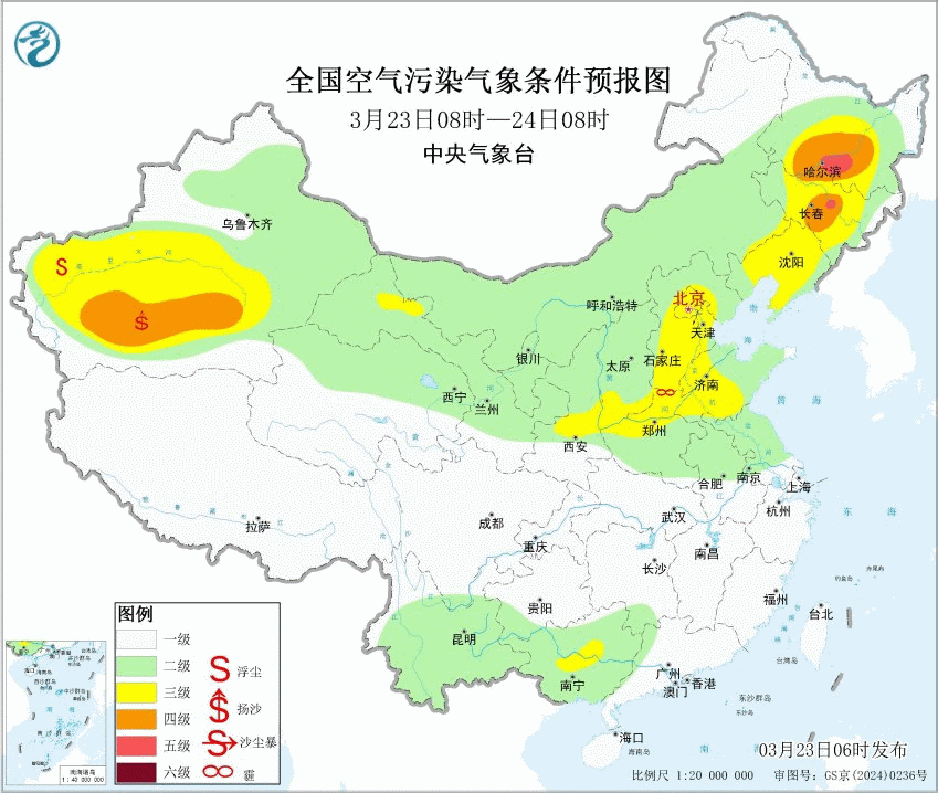 3、低能见度天气本周在降水的间歇期,长江流域可能还会出现雾。在暖湿气流主导的一些较弱的降雨时段,也可能出现雨雾混杂、烟雨朦胧的情况。东北地区,本周可能还会有霾。25日至26日,新疆东部和南部、内蒙古西部、甘肃西部等地的部分地区有扬沙或浮尘天气,新疆东部局地有沙尘暴。