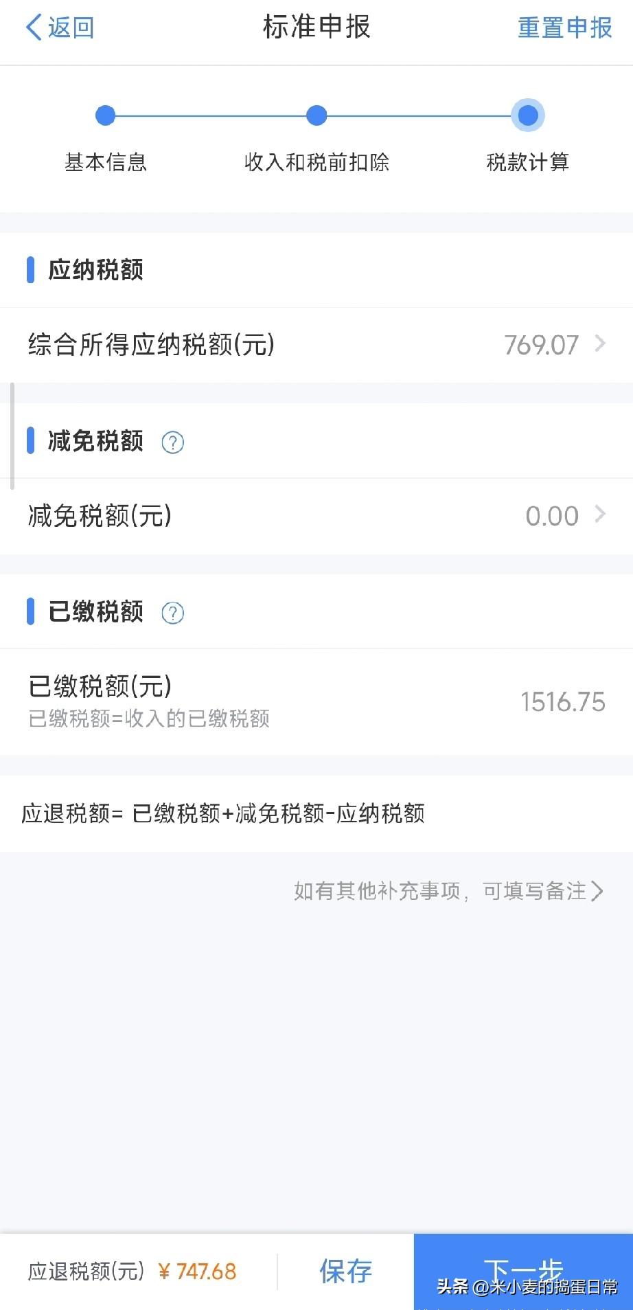 今年个税退税,有人欢喜有人愁 刚点开个税APP,2025年度汇算清缴终于来了!看着屏幕上的应退税额747.68元,心里瞬间踏实了不少——这可是实打实的“回血”啊! 身边朋友的情况却大相径庭:有的退了两千多,抱着奶茶笑出了声;有的不仅没的退,还得补税几千块,脸都绿了。其实退税多少,全看一年里的收入、专项附加扣除和预缴情况。 有人说“退税是国家发的年终奖”,也有人吐槽“早知道多填点专项扣除”。其实不管退多退少,都是对过去一年收支的梳理,也是对税务规则的一次再学习。 你今年退了多少?是惊喜还是“惊吓”?评论区聊聊,看看谁是那个最幸运的“退税锦鲤”!