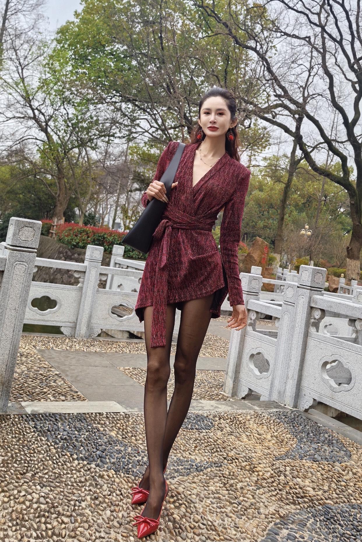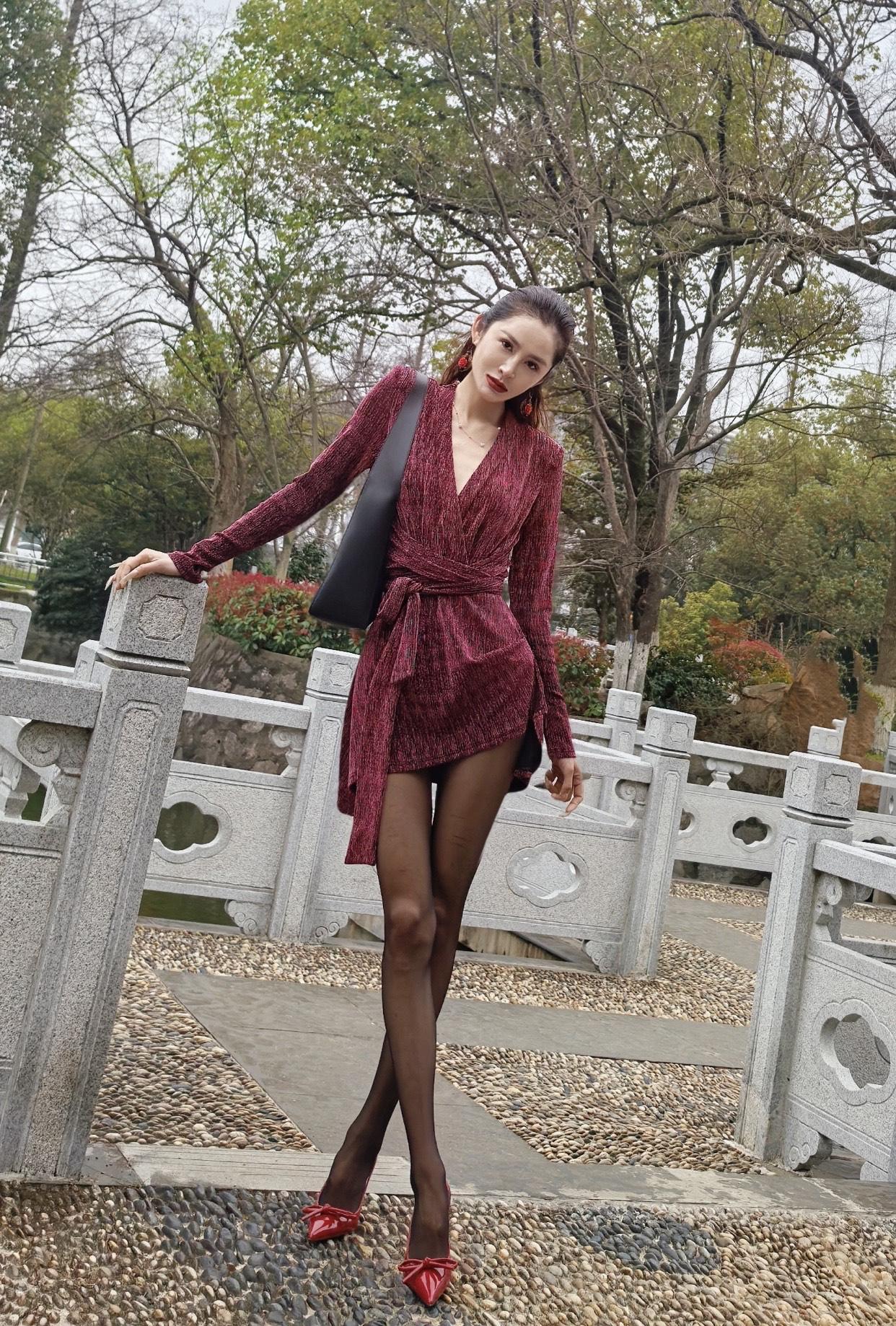 什么样的穿搭可以成为气质女神?红衣美人依栏杆
