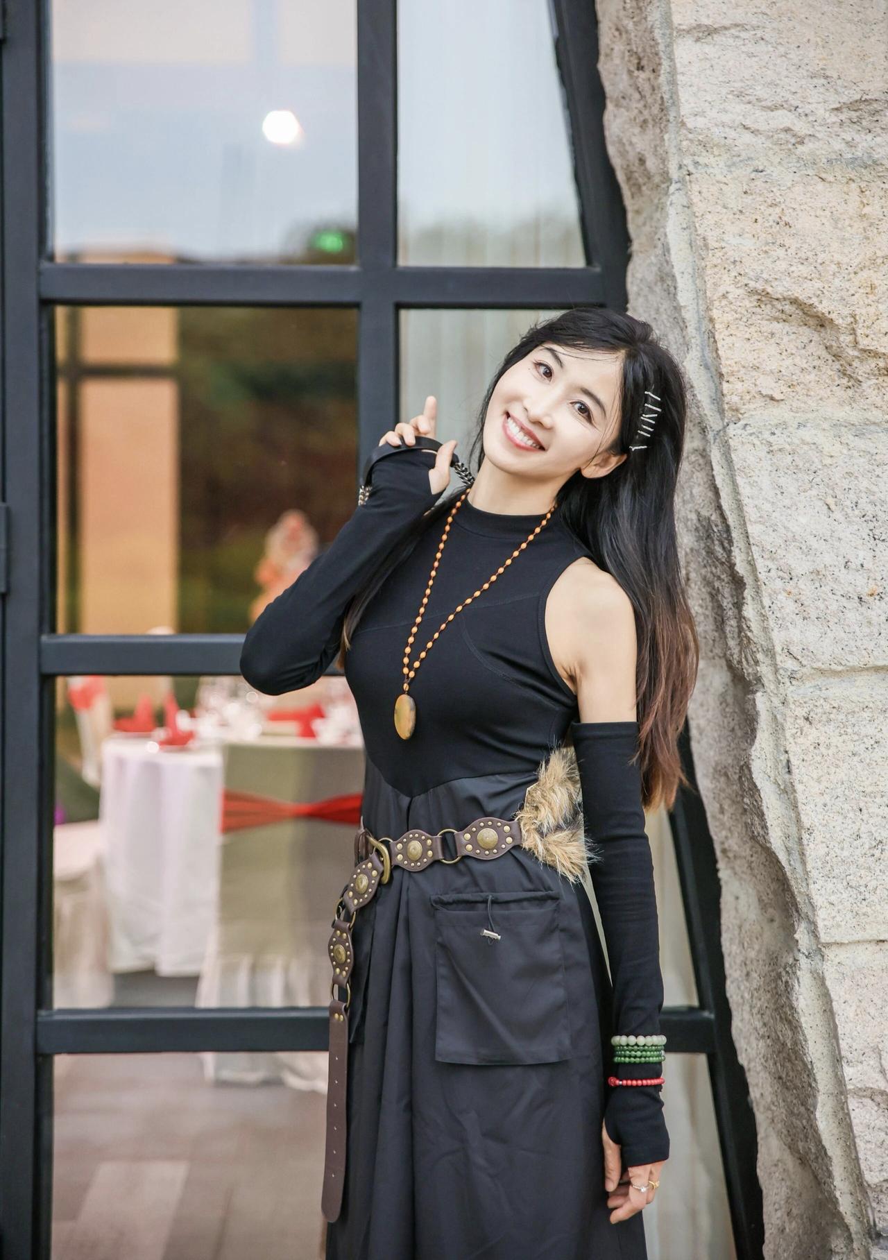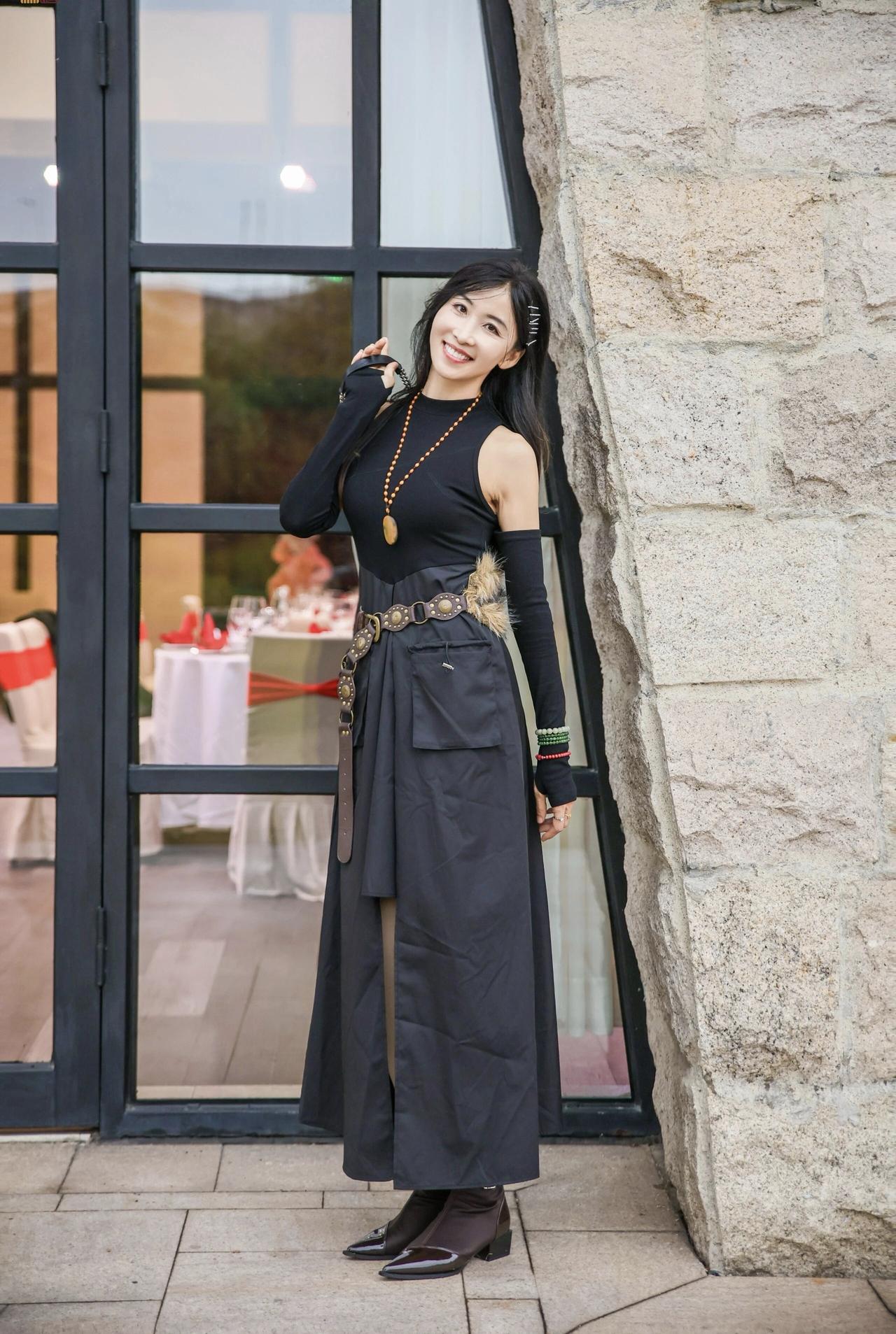 这套穿搭太有“精致轻熟感”了!带细闪的黑裙自带低调华丽感,金属装饰高跟鞋添了精致