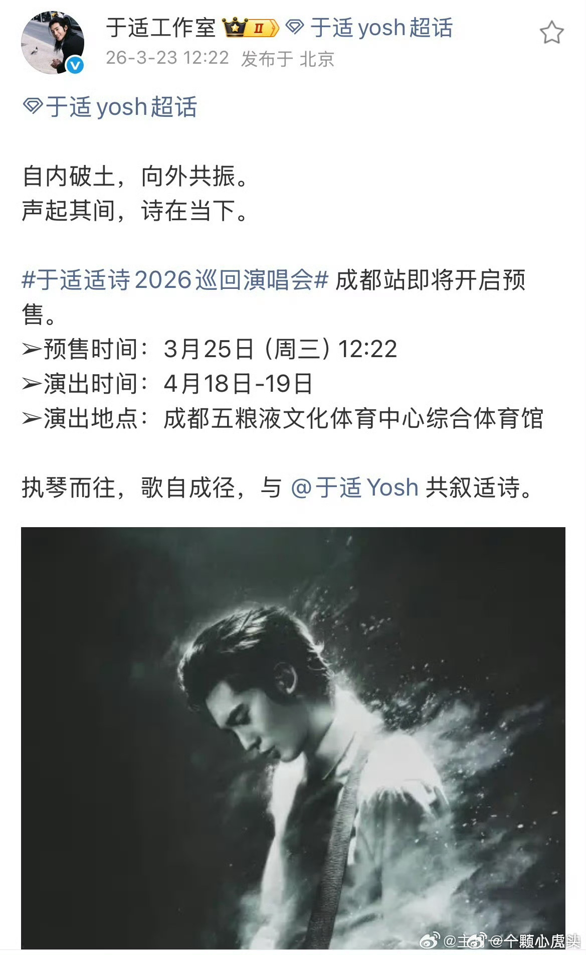 于适VISIONAIRE2026开年开季刊有,同时演唱会首站成都站也要开启预售了
