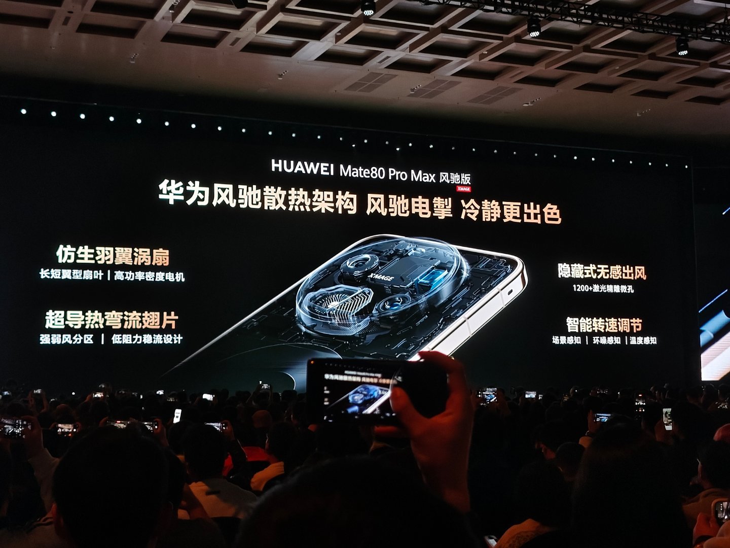 今天的第一款新品:华为Mate80 Pro Max 风驰版,增加了风驰散热模组,替换下了一颗长焦镜头,但是因为这一次华为Mate80 Pro Max搭载了两颗潜望长焦,所以这么操作也不会太影响影像的质量。