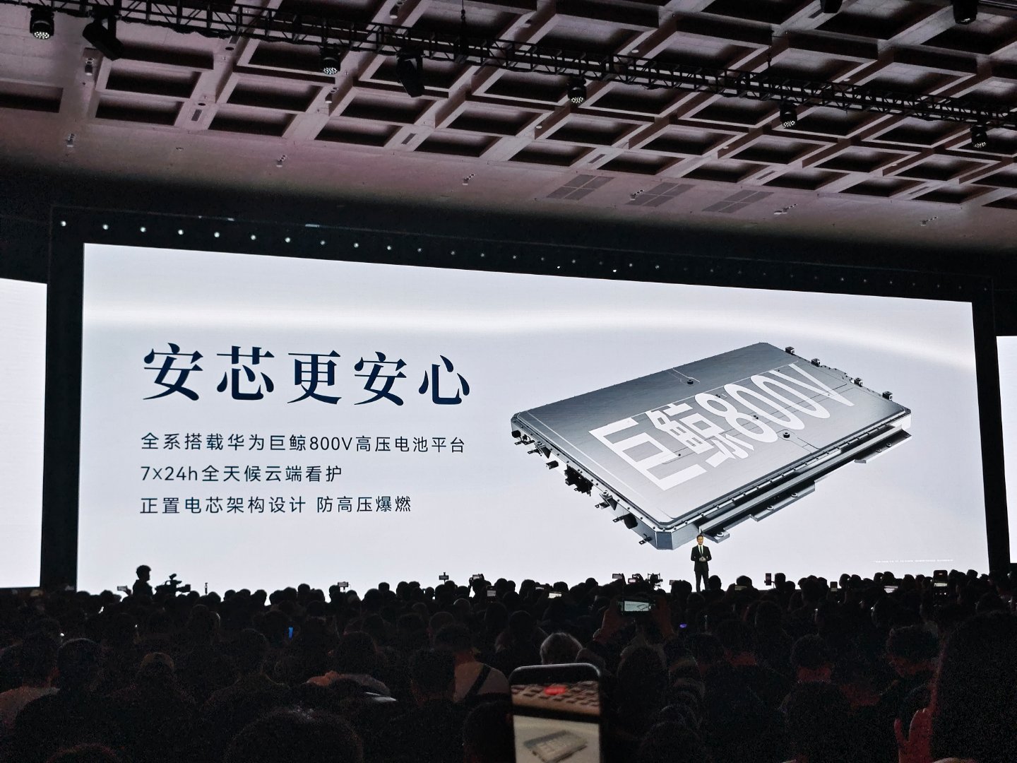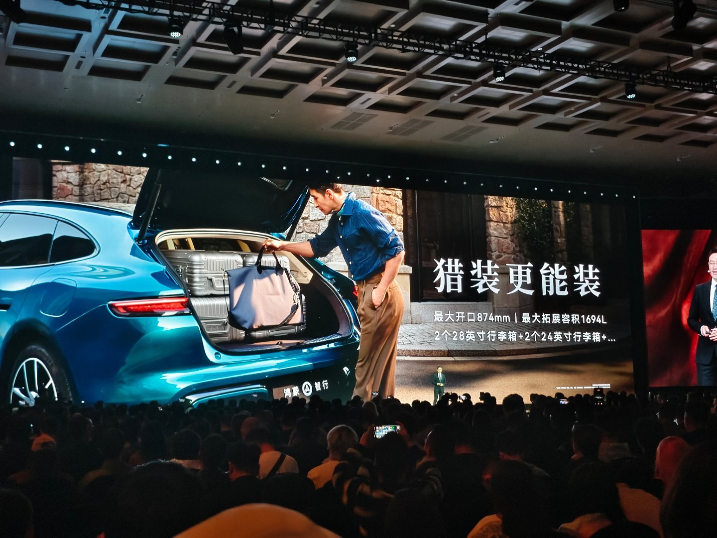 拥有非常大的后备箱空间,掀背大后备,最大开口874mm,最大扩展容积1694L,CLTC续航905公里,全系搭载华为巨鲸800V高压电池平台,全系标配896线激光雷达。