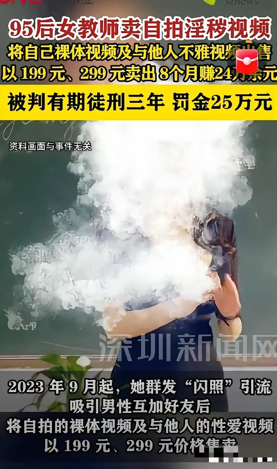 颠覆三观!湖南祁东,20多岁的女老师,这是这个社会的悲哀,不是她的悲哀,中国人谁不是为金钱所困,但凡合法途径能挣到钱,估计她也不会干这个。 这不等于白忙活了,赚的都给交罚款了,还丢了个工作! 白赚了,还得搭一万,蹲三年。其实拍下来自己看看可以,只是拍出来后赚钱这就不雅了,这么多人看,也不怕熟人认出来,胆子不小。 悲哀啊,是何种教育使她步入堕落的呢。以后还有什么面立于人世,就为这么点钱? 罚款25万倒贴一万名败坏还要坐三年,亏大发了,这是被举报了抓的吧。