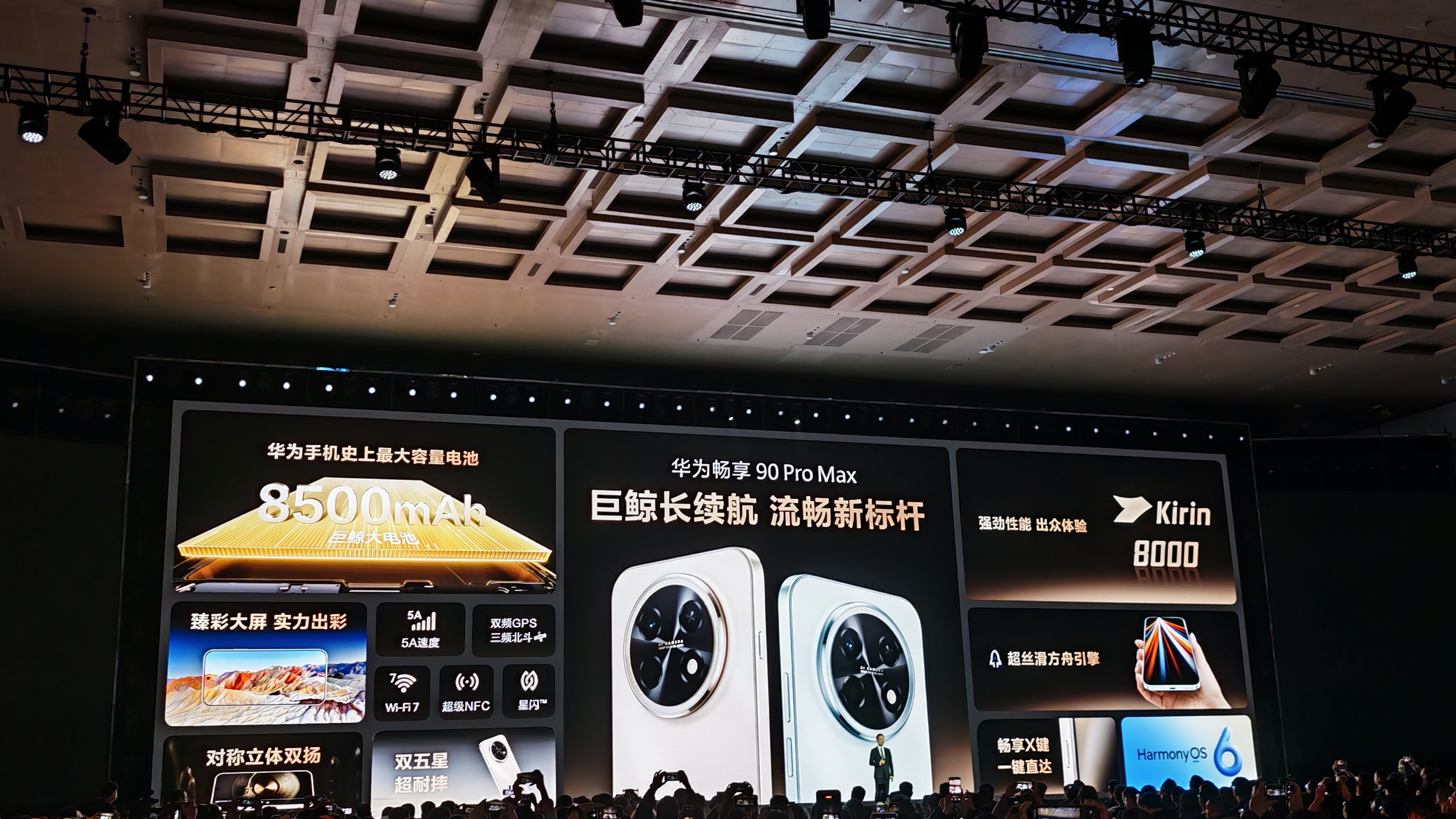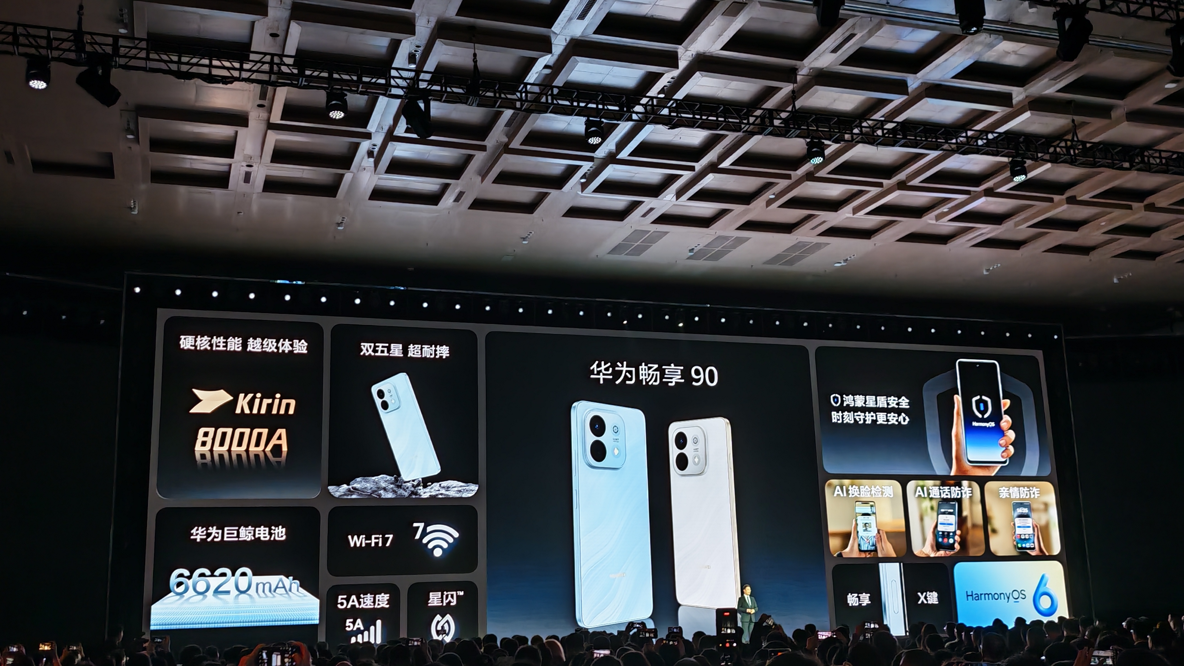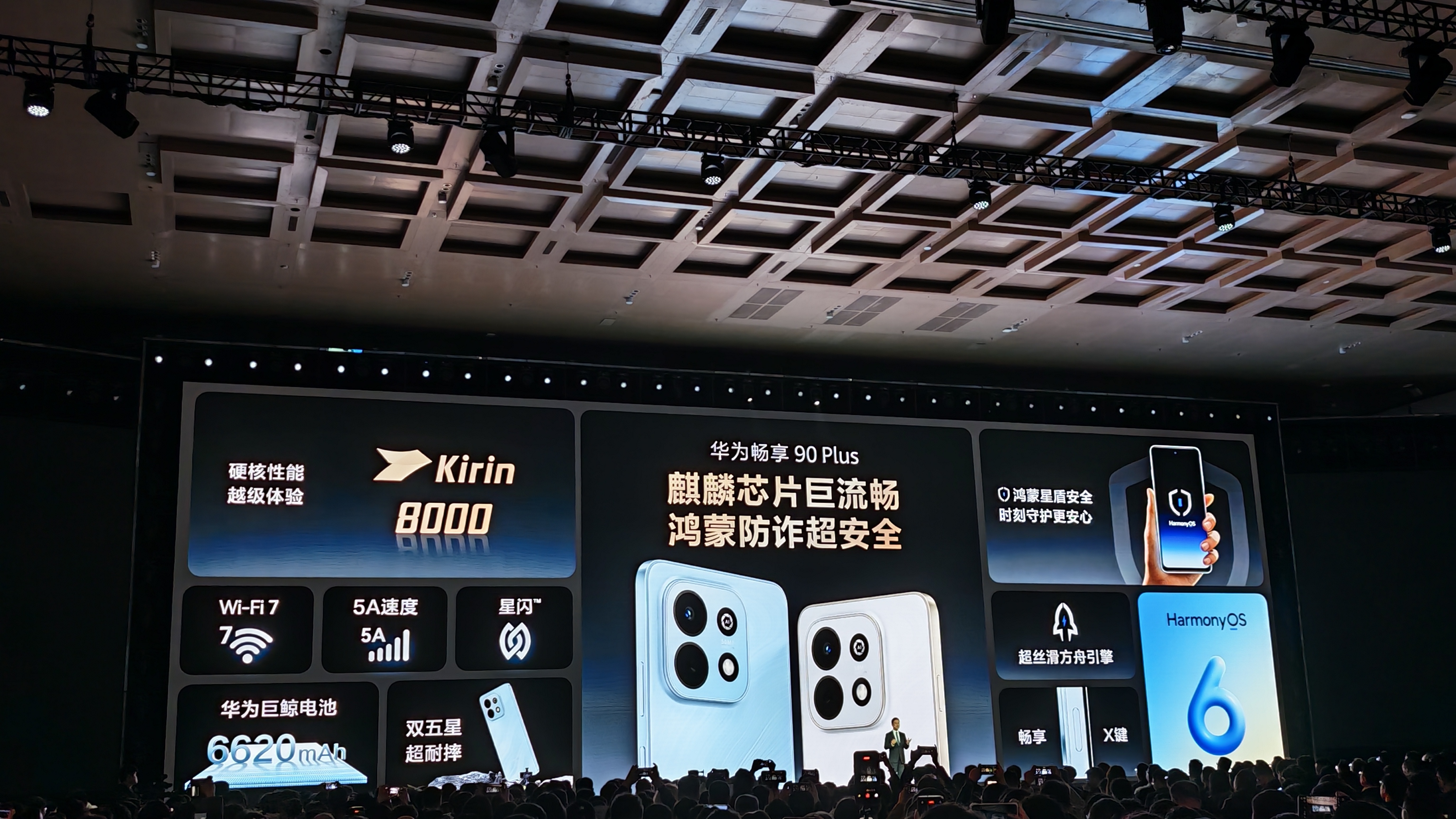 华为千元机全系搭载麒麟8系芯片其中华为畅享 90 Pro Max和华为畅享 90 Plus,搭载的都是麒8000,系统都是鸿蒙操作系统 6,售价分别是1699起和1499起,华为畅享 90 搭载的则是麒麟8000a,起售价1299。