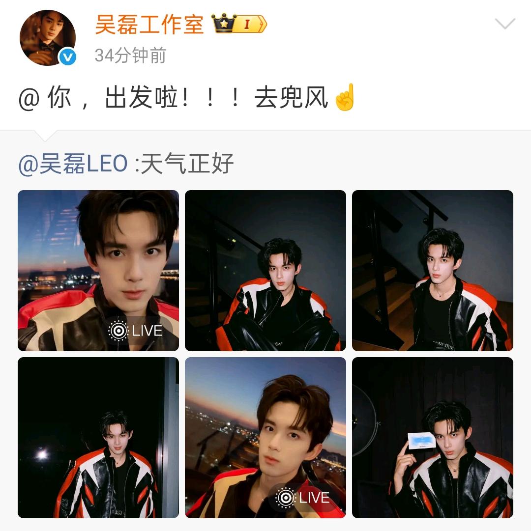吴磊工作室艾特吴磊去兜风暗指有活动出席 吴磊分享了最新营业照,照片中他穿着带有