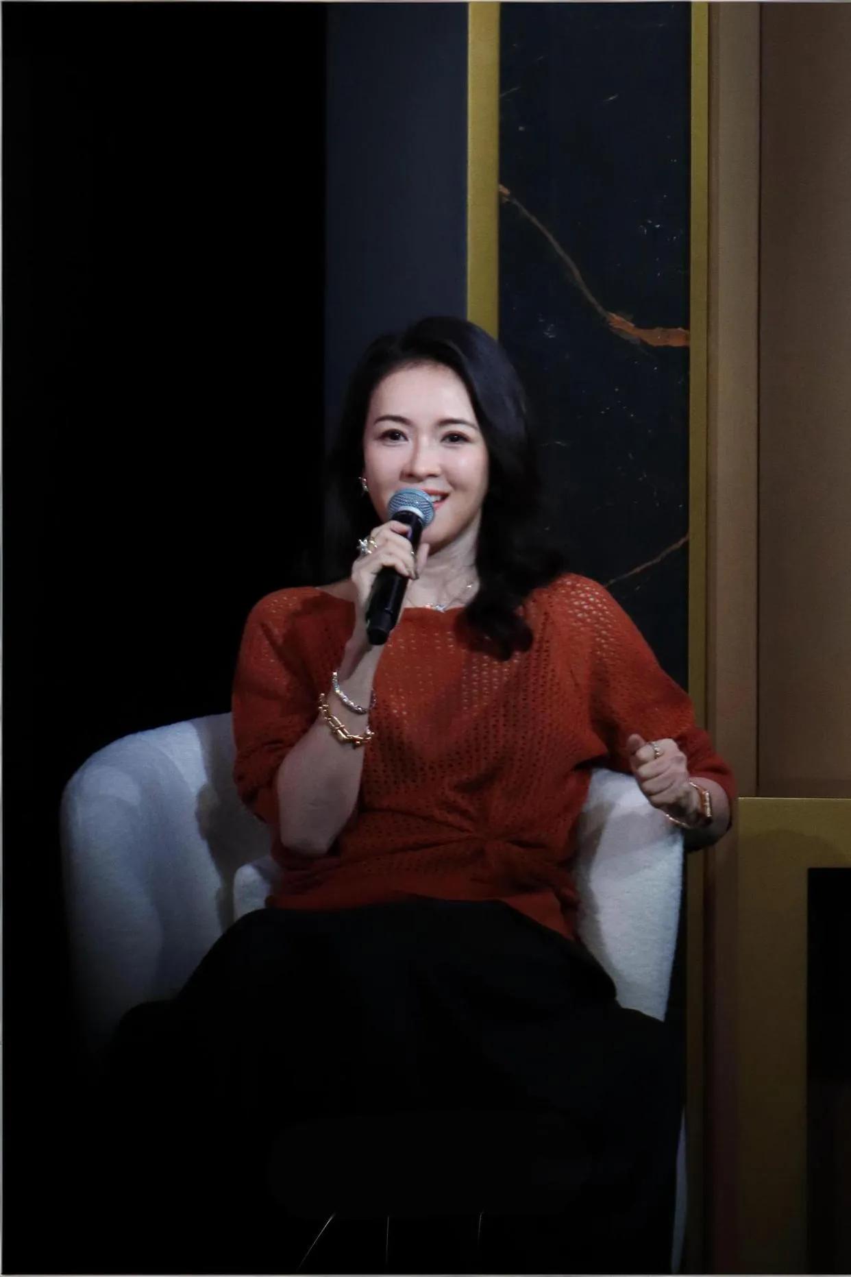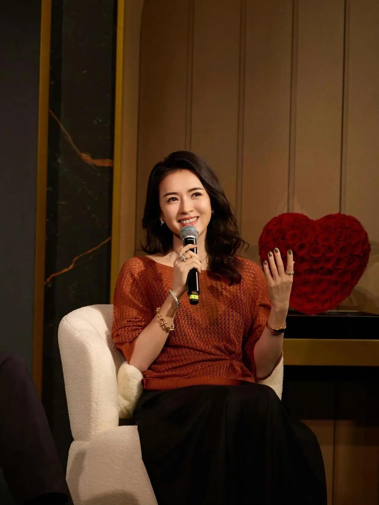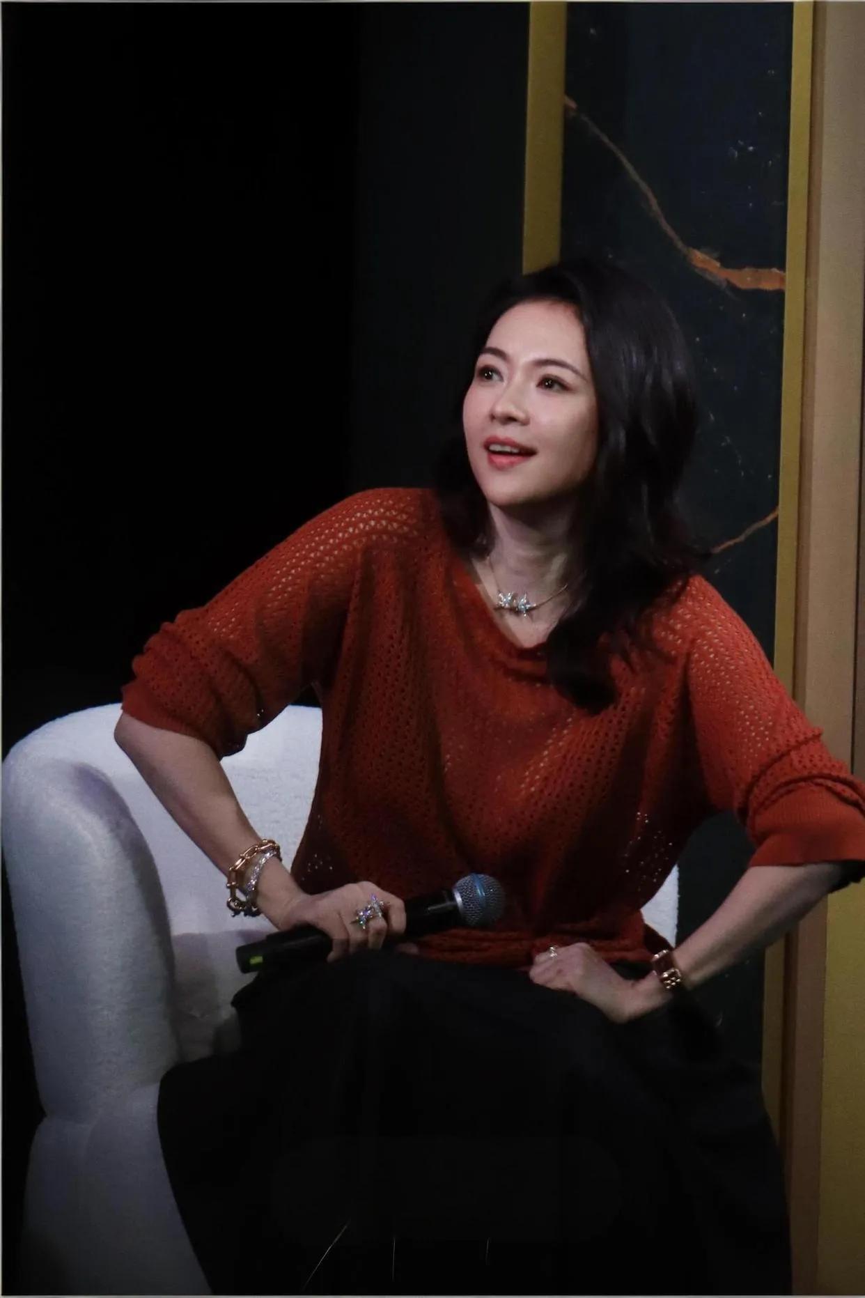 46岁章子怡状态也太绝了! 砖红色镂空针织衫+黑色半身裙,温柔又显贵,增肥后反而