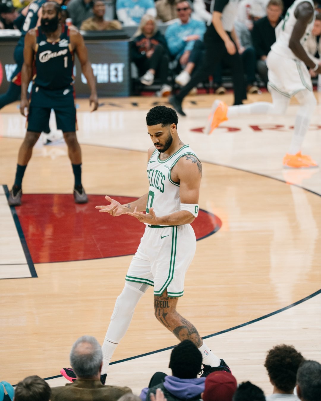 凯尔特人图库 自从跟腱伤势复出至今,塔图姆在8场比赛里场均得到19.1分8.9篮板3.3助攻,投篮命中率38.8%,三分球命中率29.3%!状态有所起伏很正常,调整好心态,继续通过比赛去打磨曾经的感觉吧!凯尔特人热爱日记