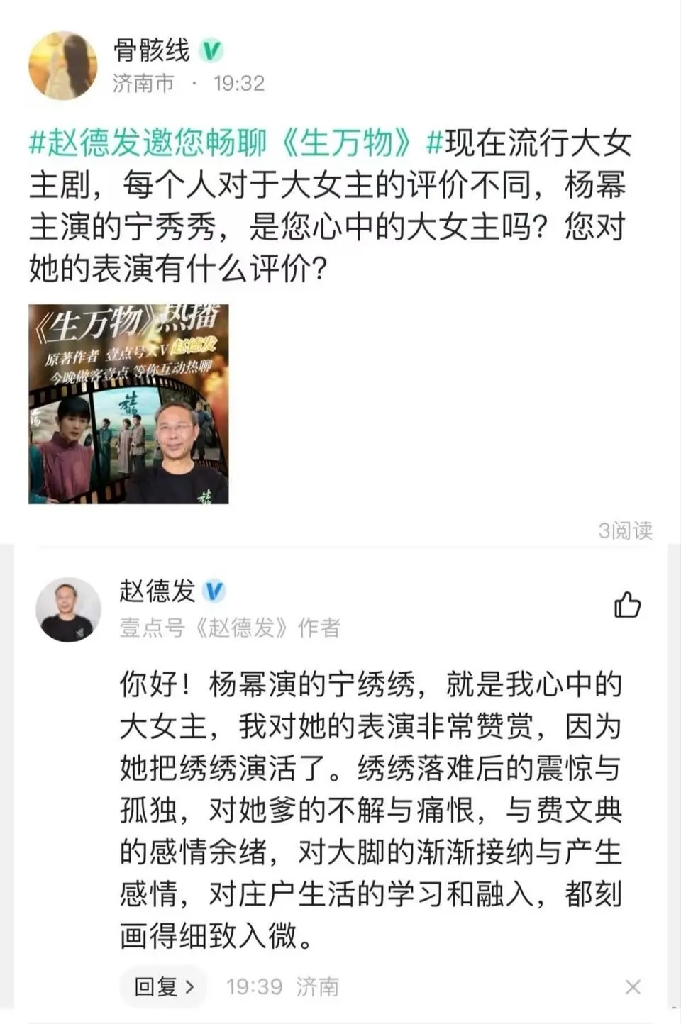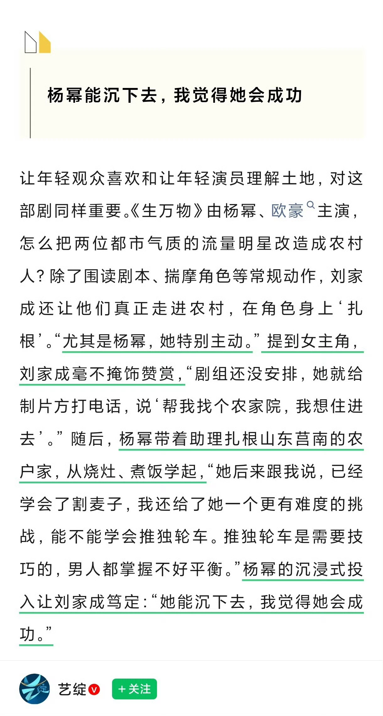 是的,《生万物》原著作者和导演就这样夸杨幂