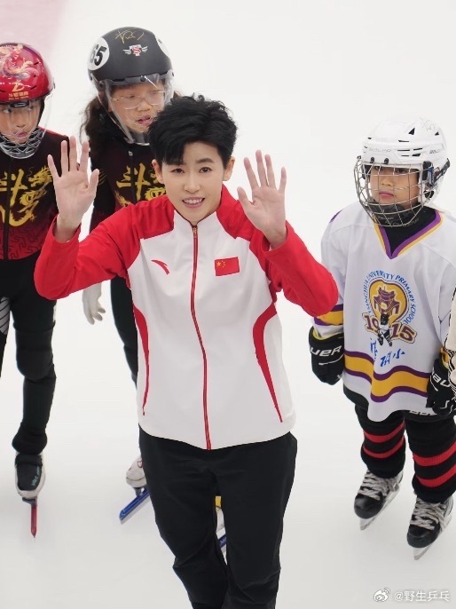 在社交平台分享:天气暖和了,清华大学的校园里全都是运动的人。“无体育,不清华”真的不只是口号。演讲现场感受到满满的支持和掌声,缓解了很多紧张。在冰场和小伙伴们互动也很开心!希望下次还来交流