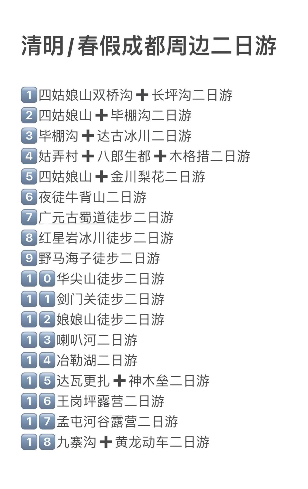 清明假期,春假,不知道去哪里玩的,可以码住哦,成都周边一日游二日游线路合集川西美景 春假 四姑娘山 古路村