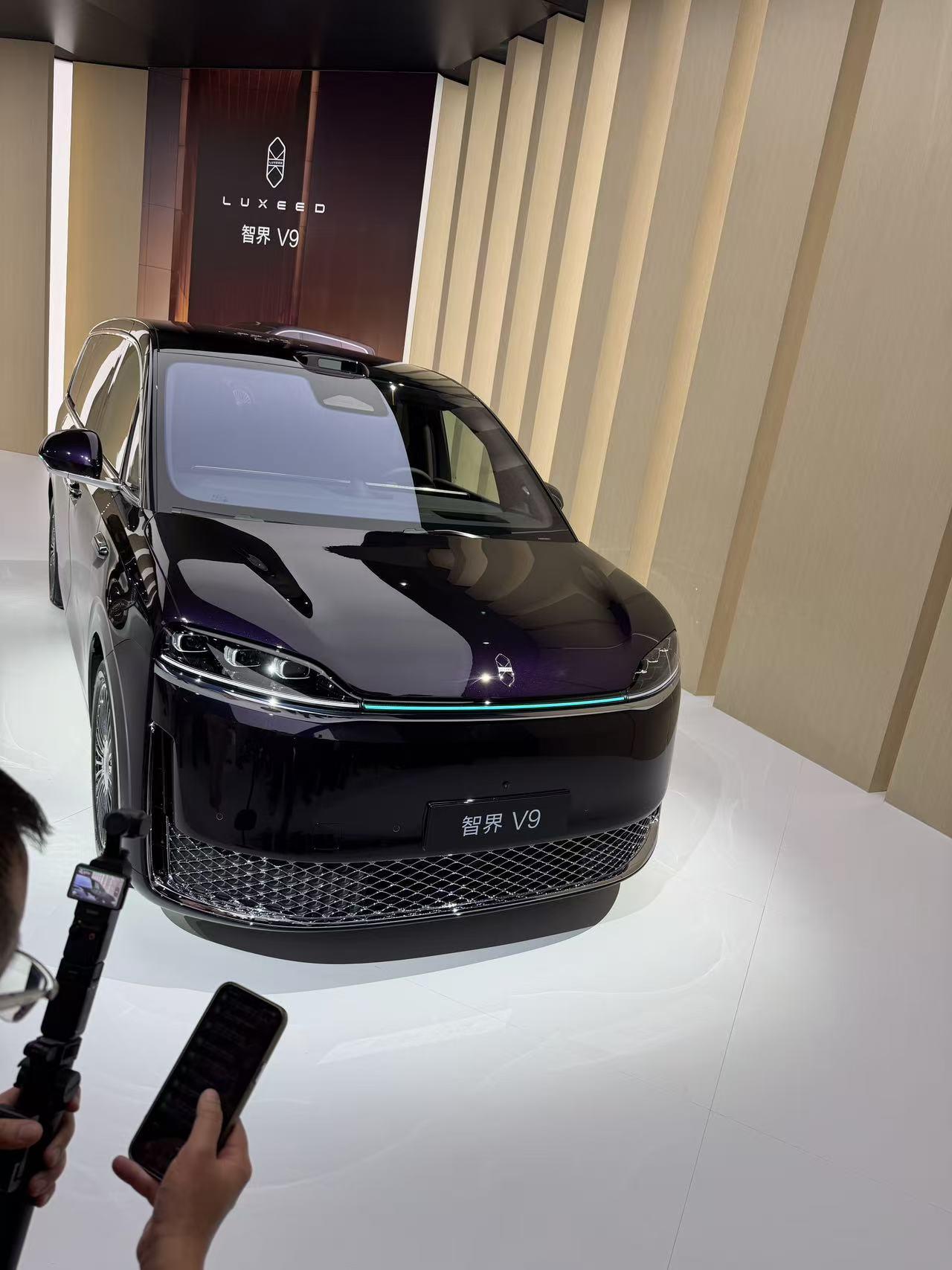 智界V9实车今天亮相了,现场有黑色和紫色两台车,明显还是感觉紫色的车漆看起来更高级,应该也会是它的主打色,就是不知道会不会加价;车头虽然就是放大版的R7,但是下面银色的镀铬中网,确实有点尊贵的感觉了,作为鸿蒙智行旗下的首款MPV,价格肯定是不会便宜的,预计在四月下旬,展车就会陆续到店,大家也可以去看实车了【来自懂车帝车友圈】